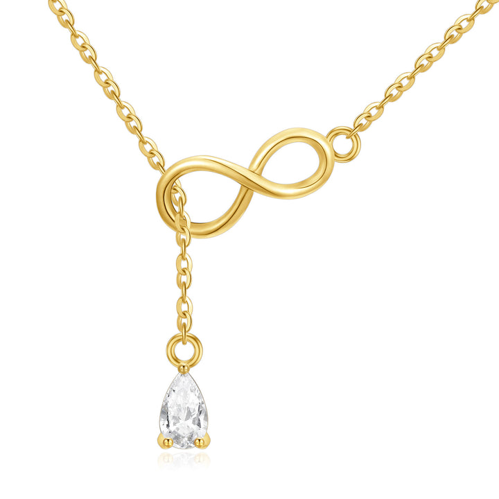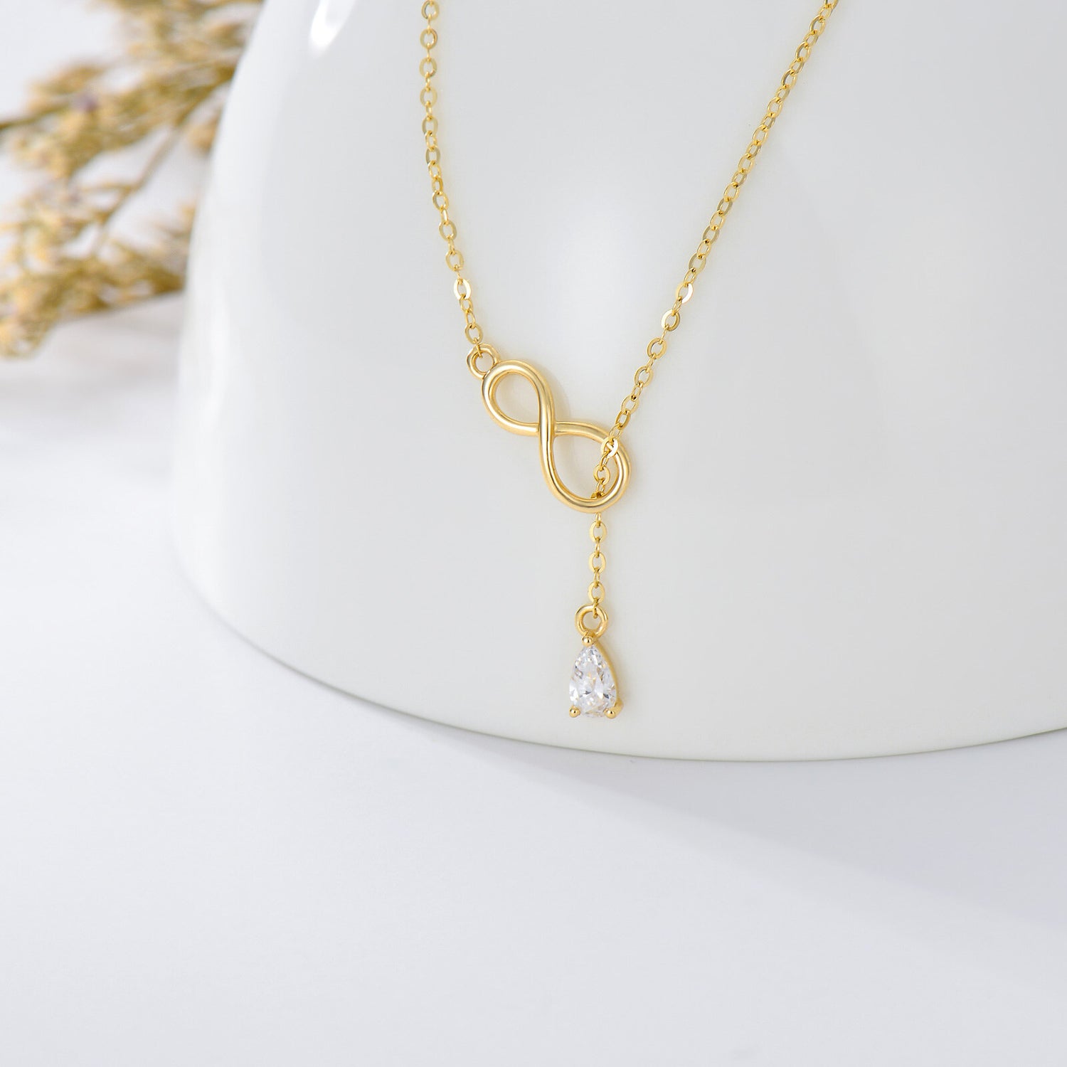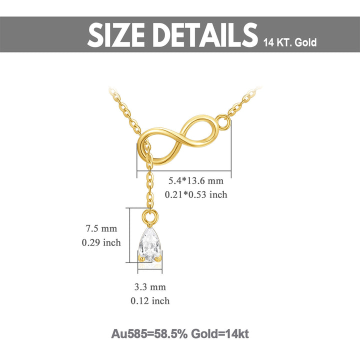 Crafted from high-quality 14K Gold, this Non-Adjustable Y-Necklace features Teardrop/Pear-shaped Cubic Zirconia and an Infinity Symbol.