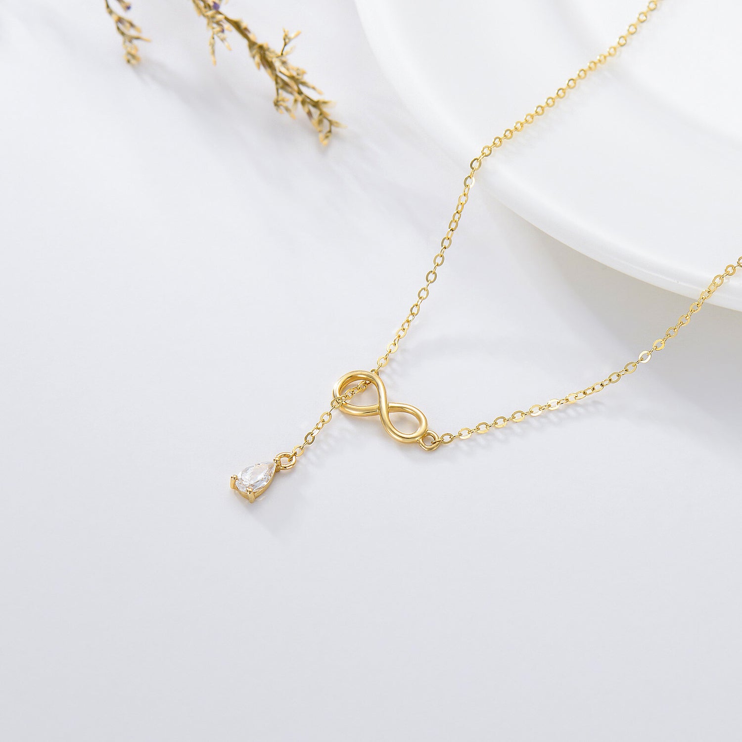This 14K Gold Teardrop/Pear-shaped Cubic Zirconia Infinity Symbol Non-adjustable Y-Necklace by YFN is designed for women who cherish timeless sophistication. Crafted from high-quality 14K Gold, this Non-Adjustable Y-Necklace features stunning Teardrop/Pear-shaped Cubic Zirconia and an eternity-inspired Infinity Symbol.