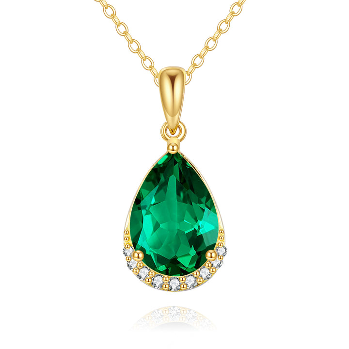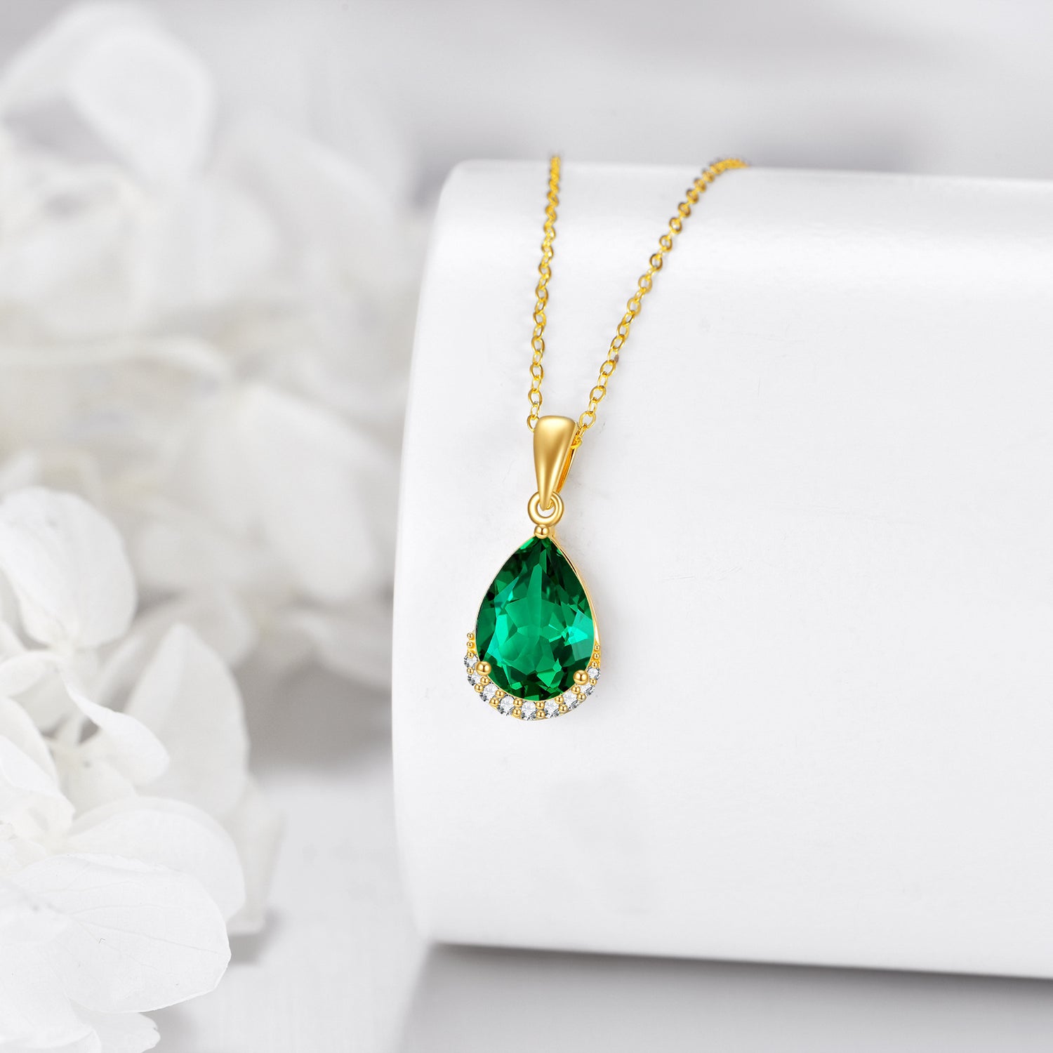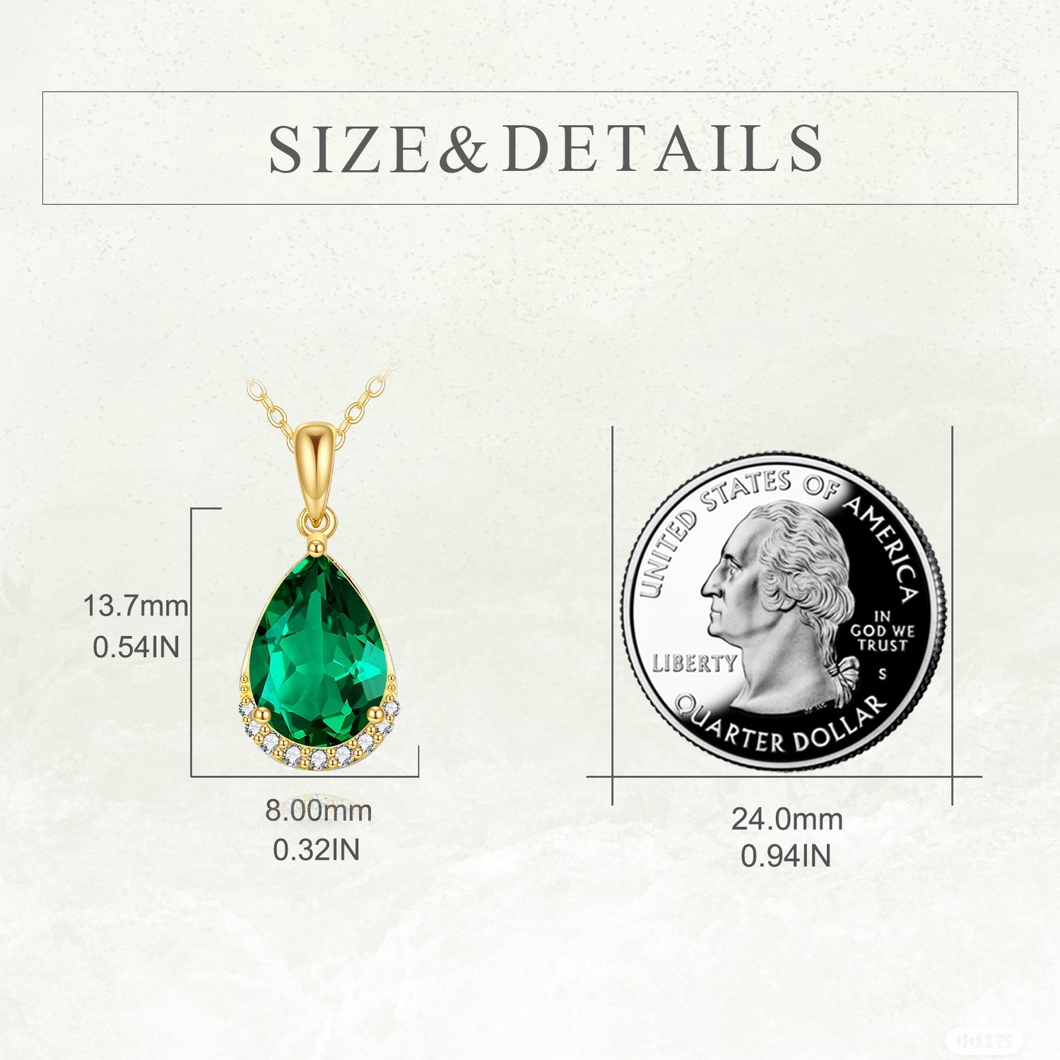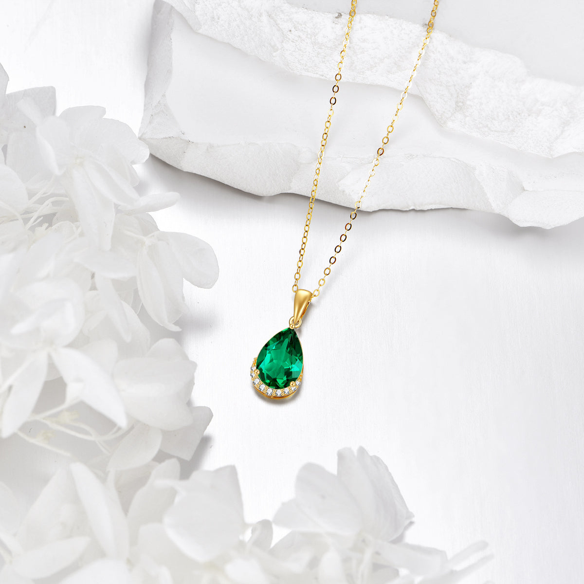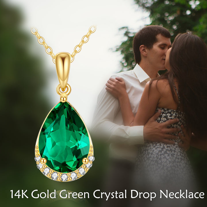 14K Gold Pear Shaped Emerald Crystal Drop Shape Pendant Necklace