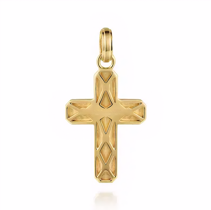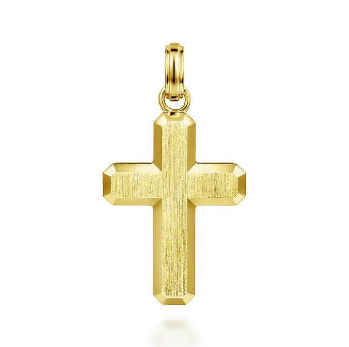 Crafted from high-quality Sterling Silver, this Cross Pendant Charm features a Brushed finish and is Yellow Gold Plated.