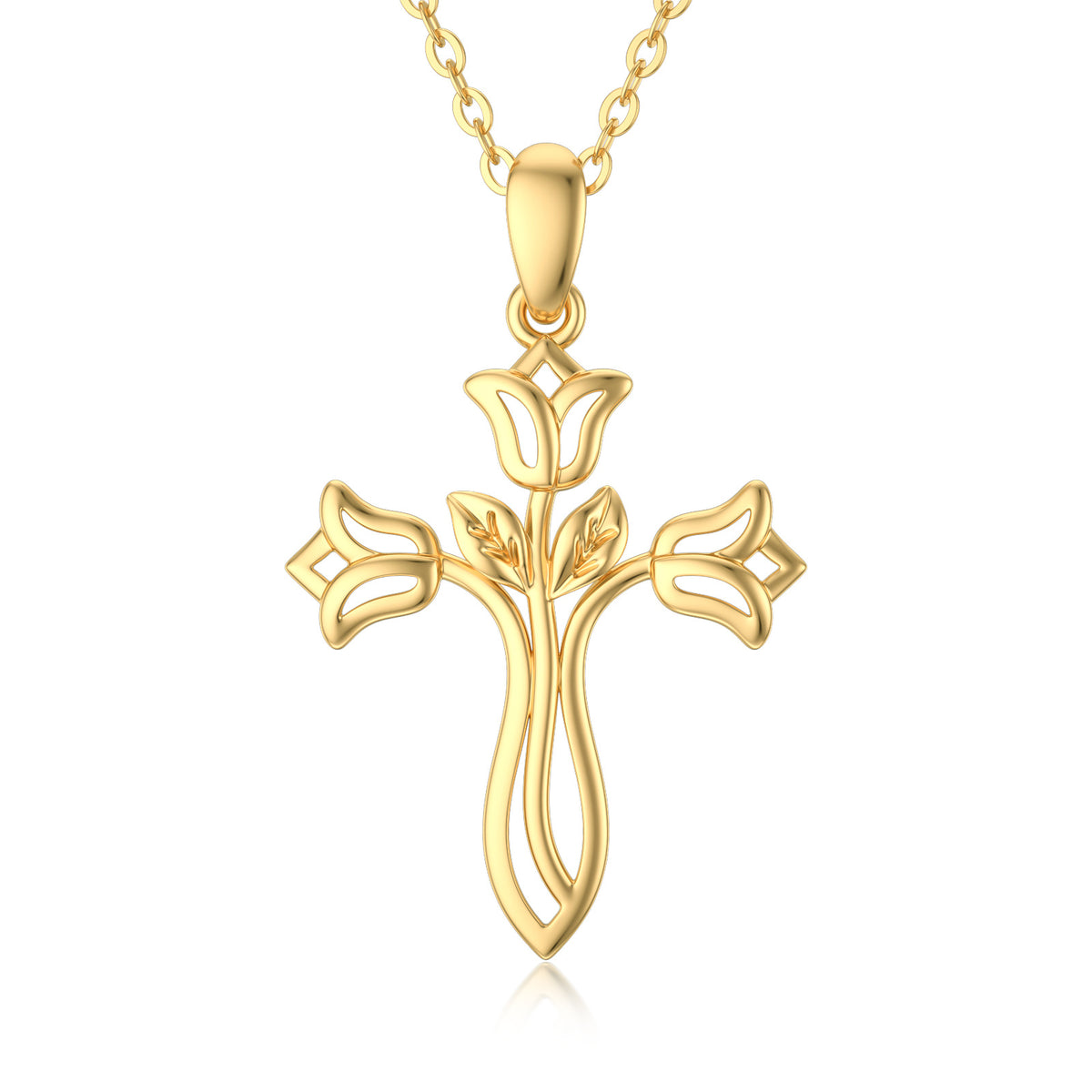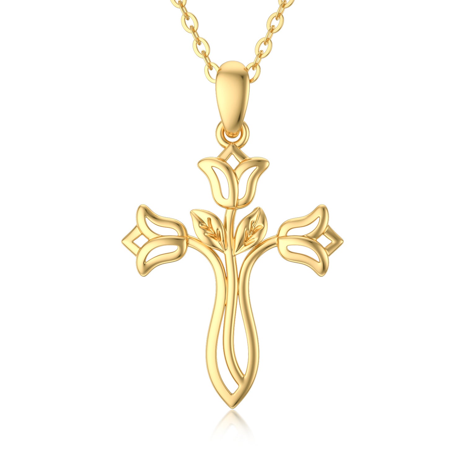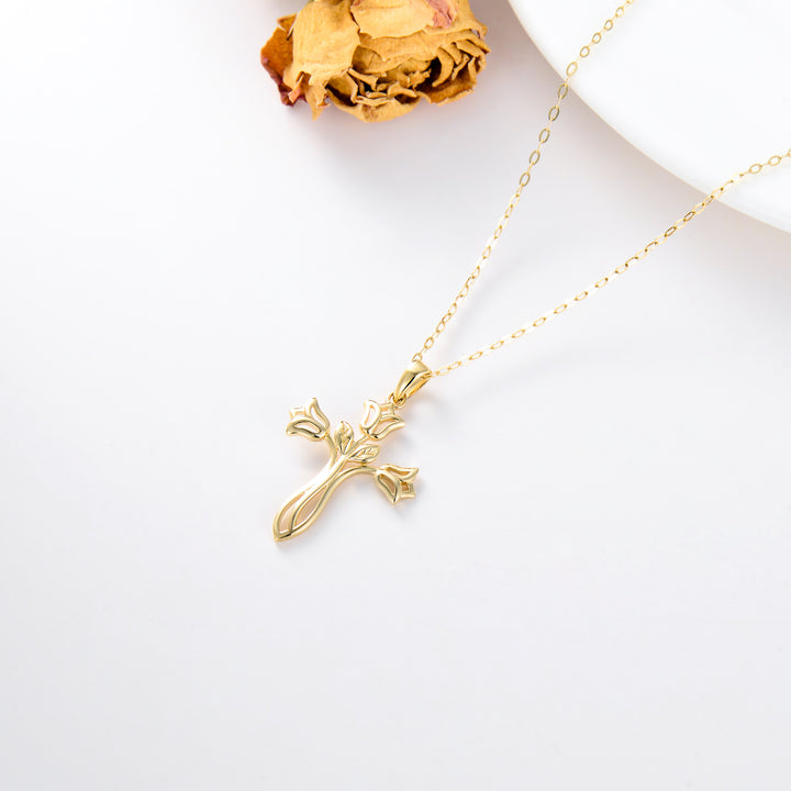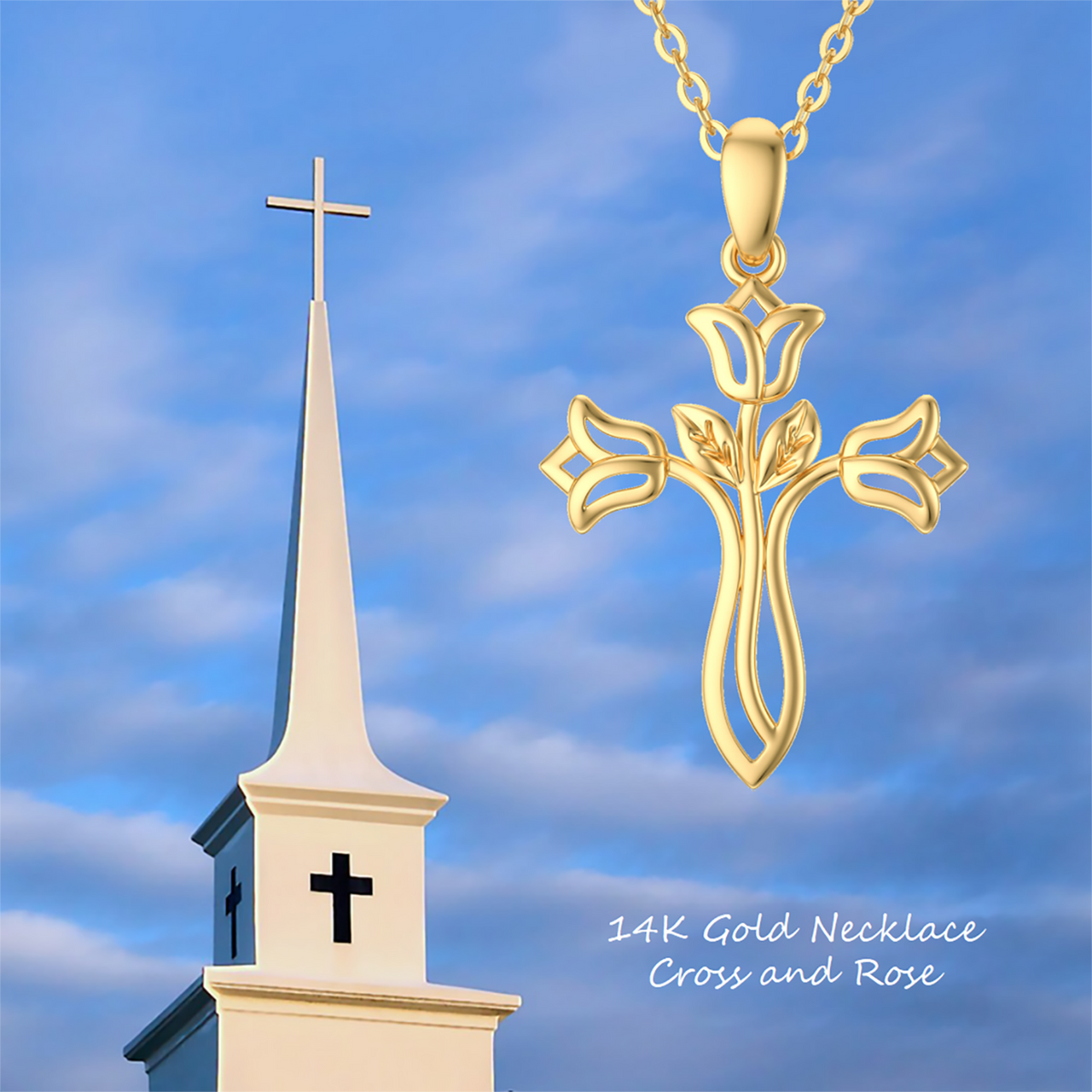 Crafted from Solid 14K Yellow Gold with a stone-free Rose and Cross motif pendant.