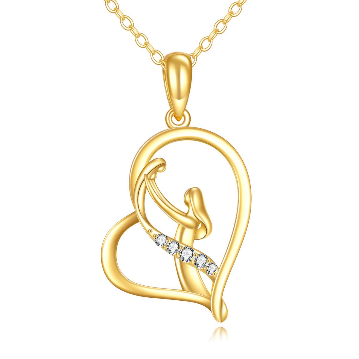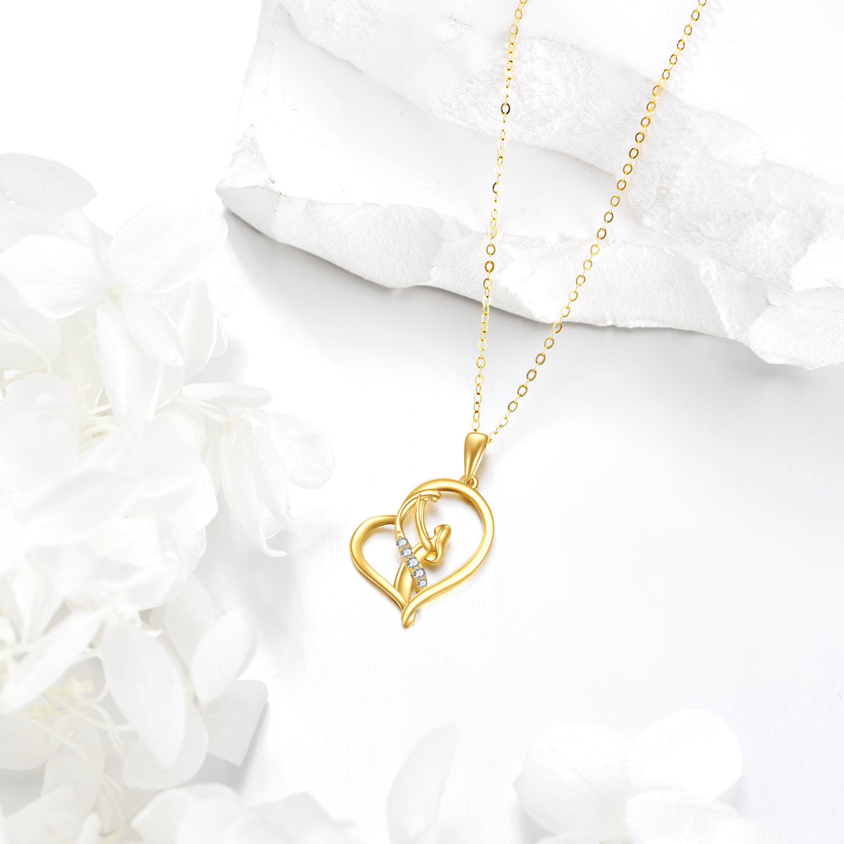 14K Gold Moissanite Mother & Daughter & Heart Pendant Necklace