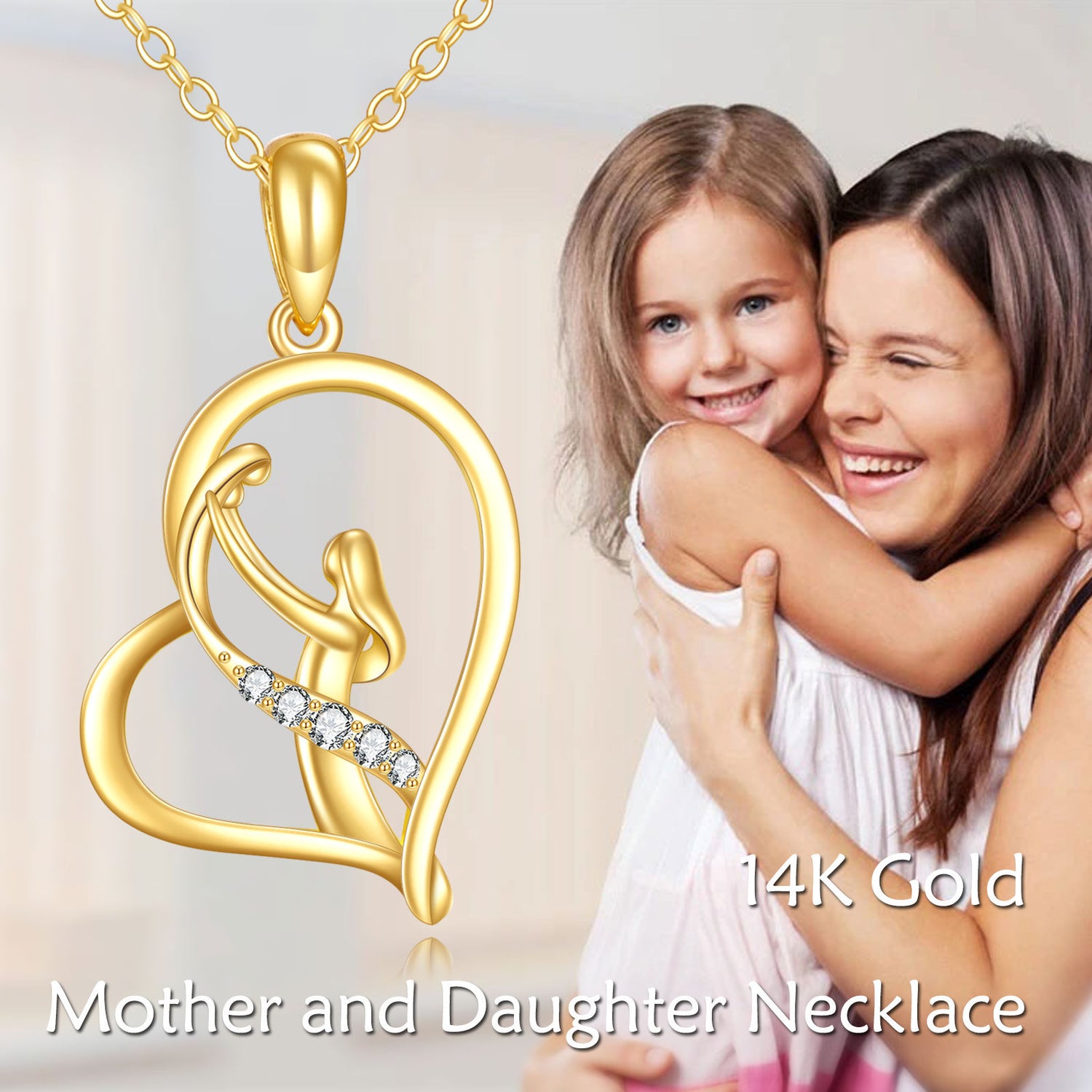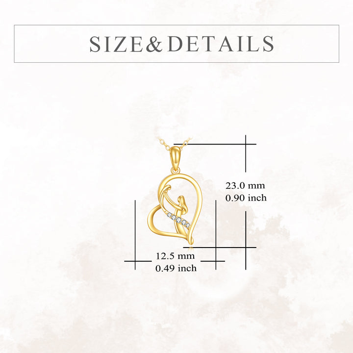 Crafted in 14K gold with moissanite stones and heart-shaped mother–daughter motif. Includes 14K gold chain.