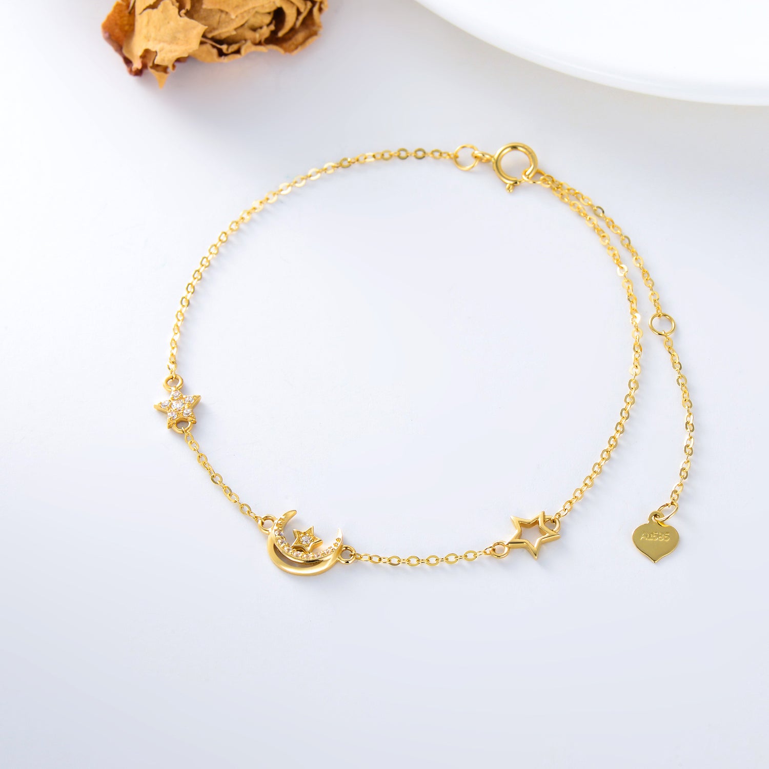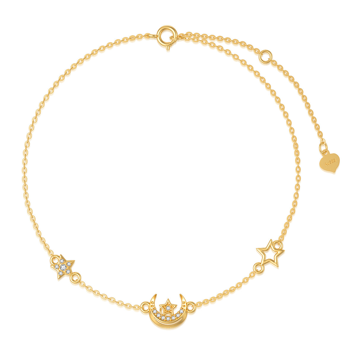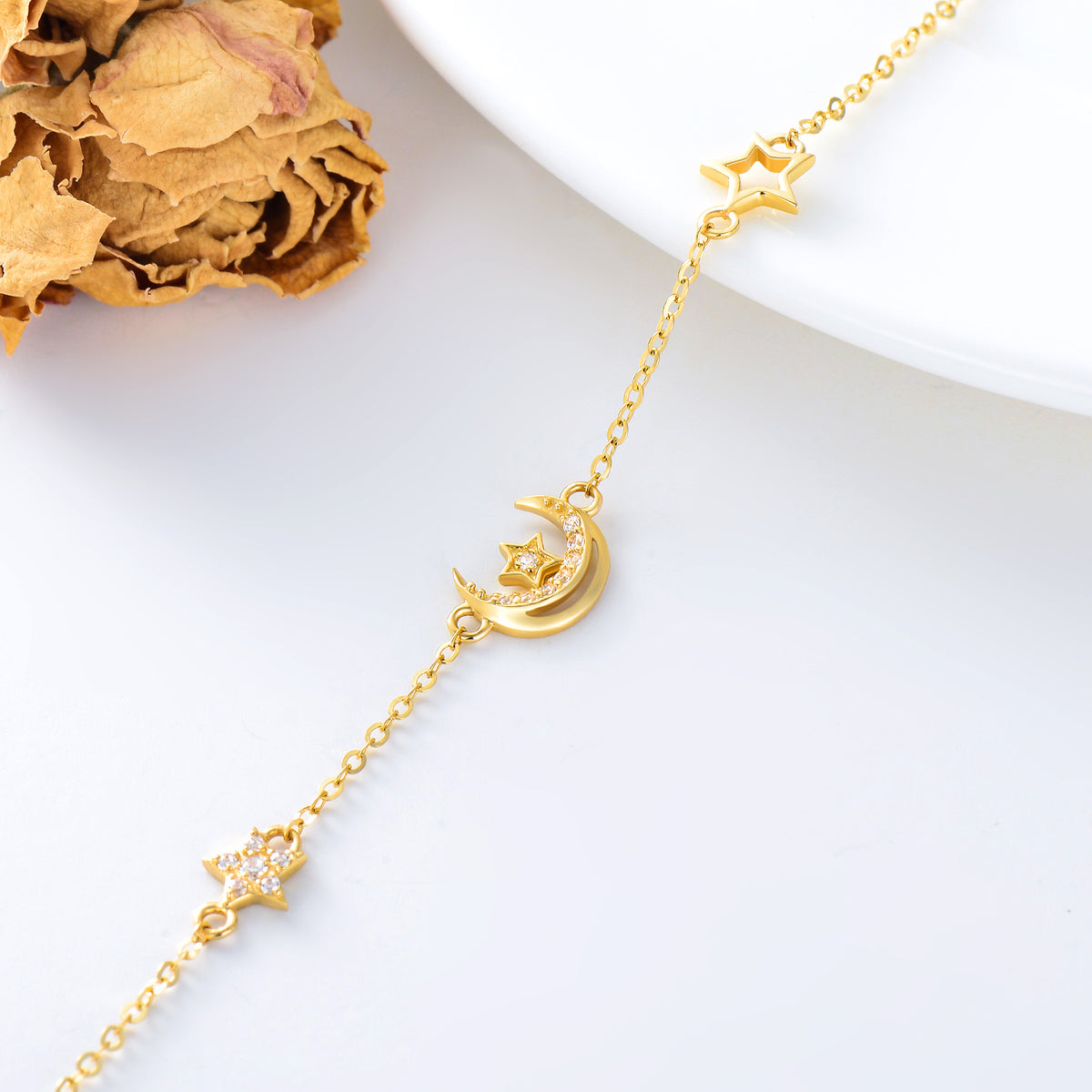 14K Gold Cubic Zirconia Moon & Pentagram Charm Bracelet