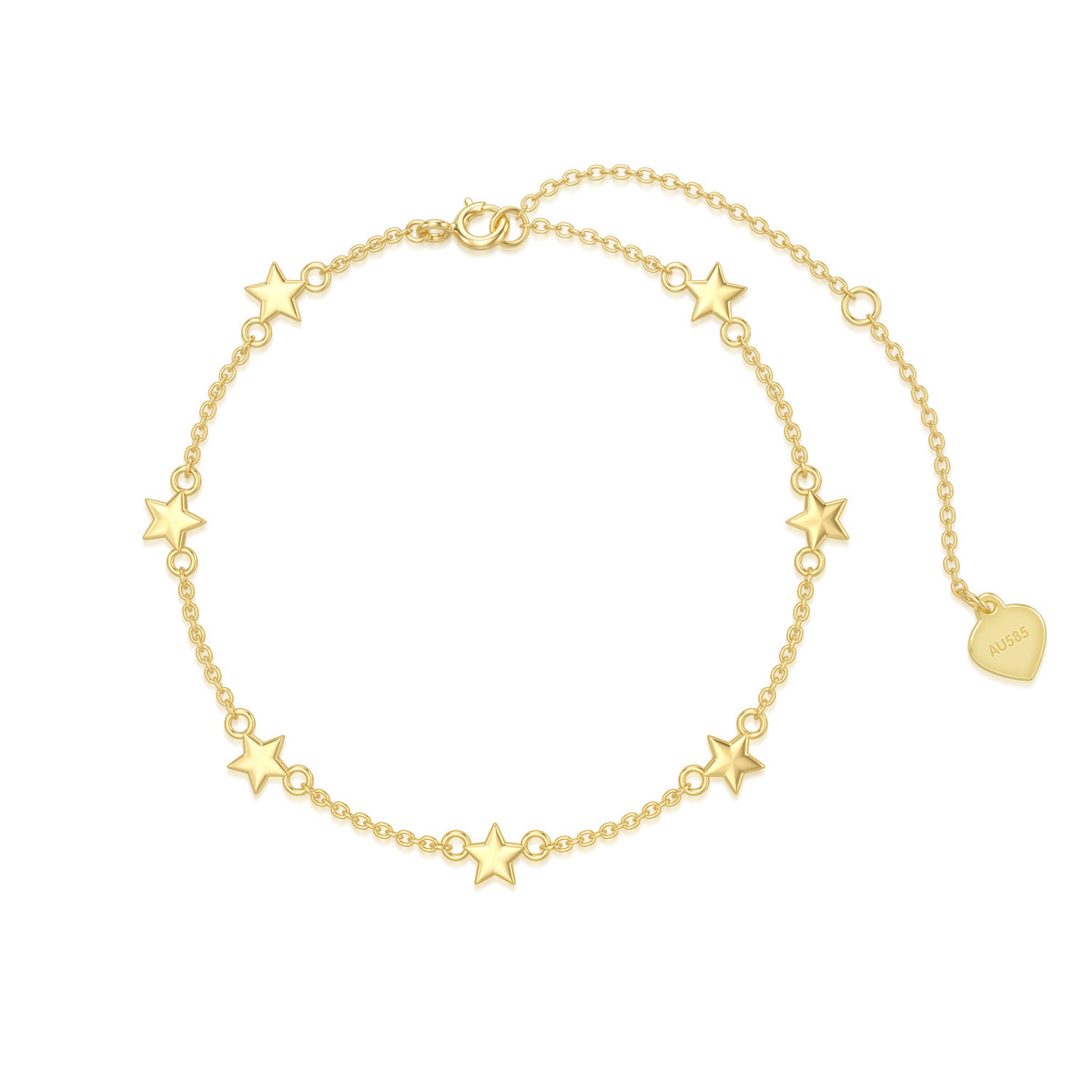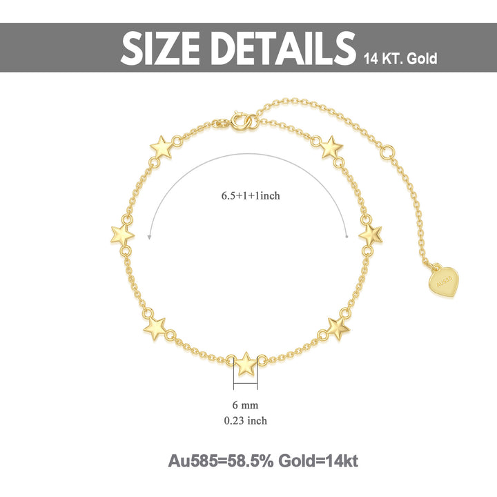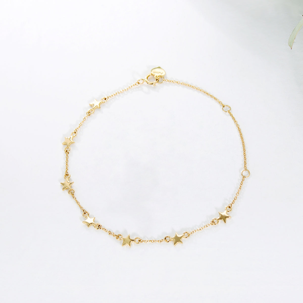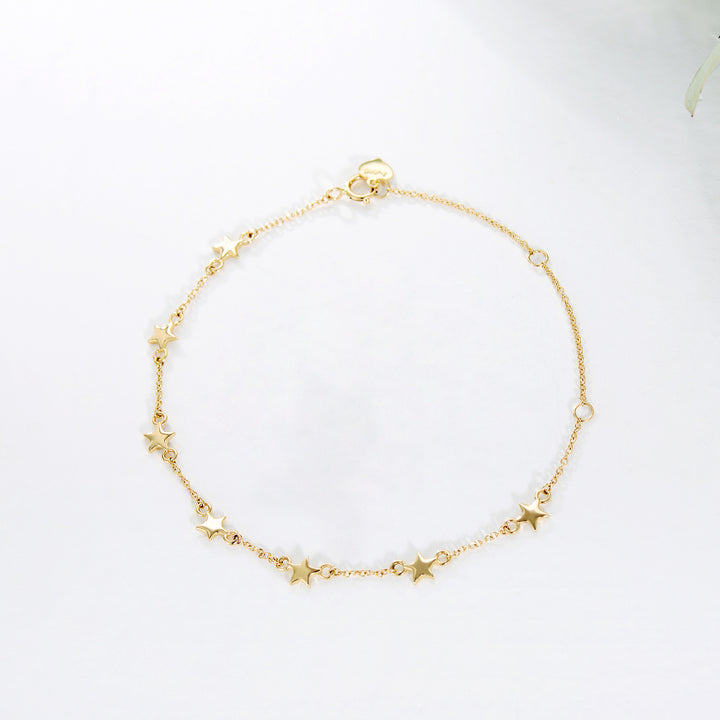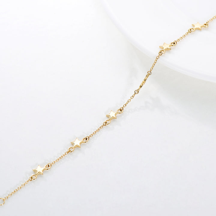 Crafted in 14K gold. Stone-free star charm bracelet design. Includes fine bracelet chain with secure clasp.