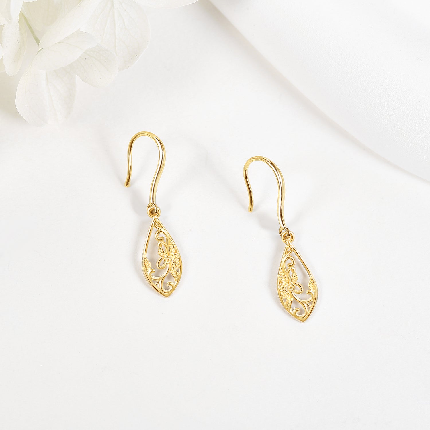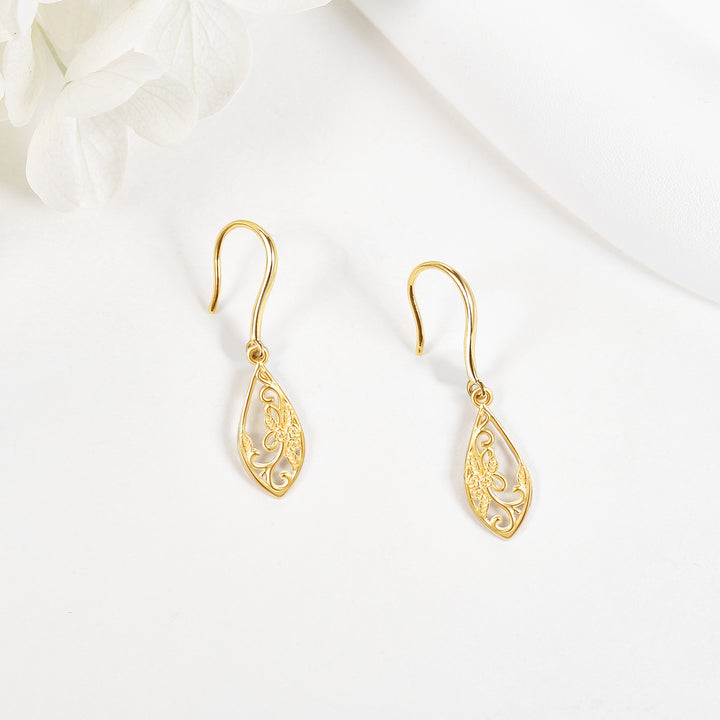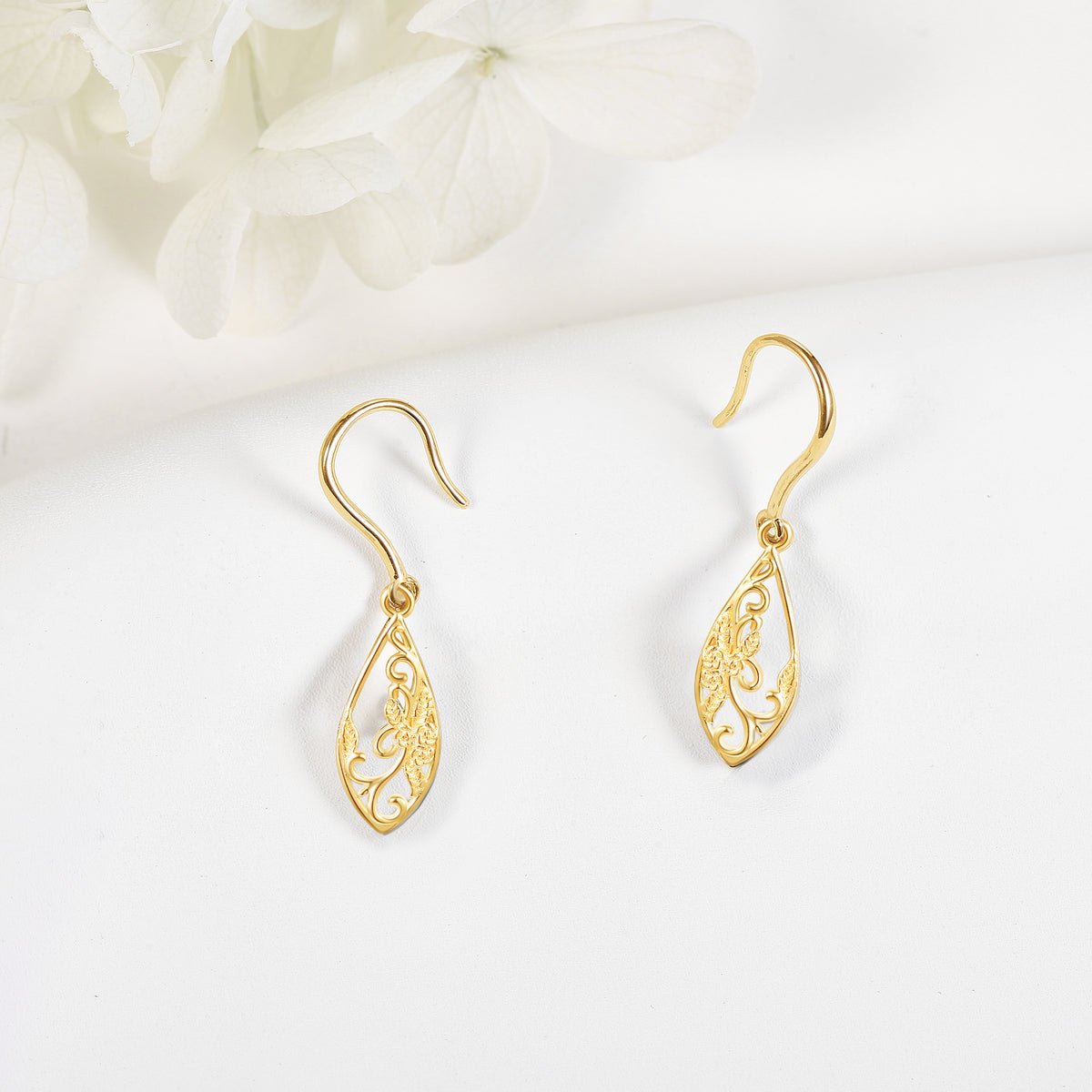 These 14K Gold Filigree Drop Earrings by YFN embody a graceful blend of timeless artistry and feminine elegance. Their intricate filigree pattern creates a captivating lace-like effect that moves beautifully with the wearer, celebrating delicacy and refinement. Designed without stones, they exude minimalist luxury, allowing the warm glow of gold to take center stage. Light and comfortable, they offer effortless sophistication suited for both daily wear and special occasions. These earrings also echo themes of classic beauty and subtle confidence, making them an exquisite choice for women who cherish refined, versatile jewelry.