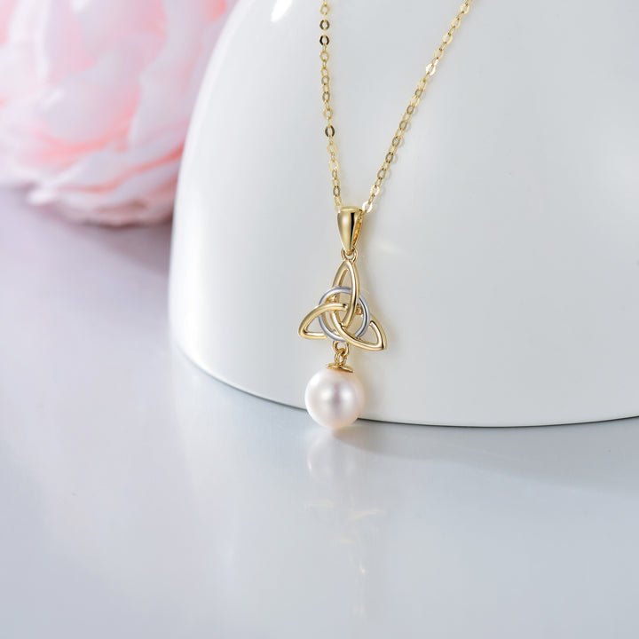 14K White Gold Two-Tone Circular Pearl Celtic Knot Pendant Necklace For Women Best Friends