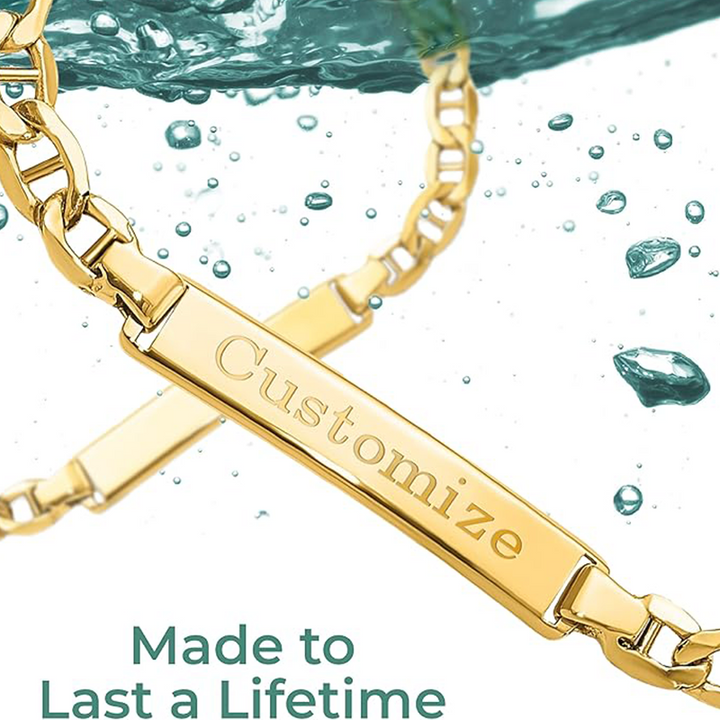 14K Gold Personalized Engraving Identification Bracelet for Women
