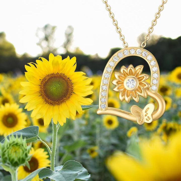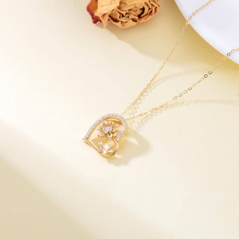 This 14K Gold Heart Butterfly & Sunflower Pendant Necklace With 5A Austrian Crystal by YFN elevates style with enchanting designs for the modern woman. Crafted from 14K gold and set with high-quality Cubic Zirconia (5A Austrian Crystal), the collection features romantic heart, serene butterfly, and radiant sunflower motifs. These luxurious necklaces are thoughtfully designed to complement any outfit, ensuring a dazzling effect and making you shine on every occasion.