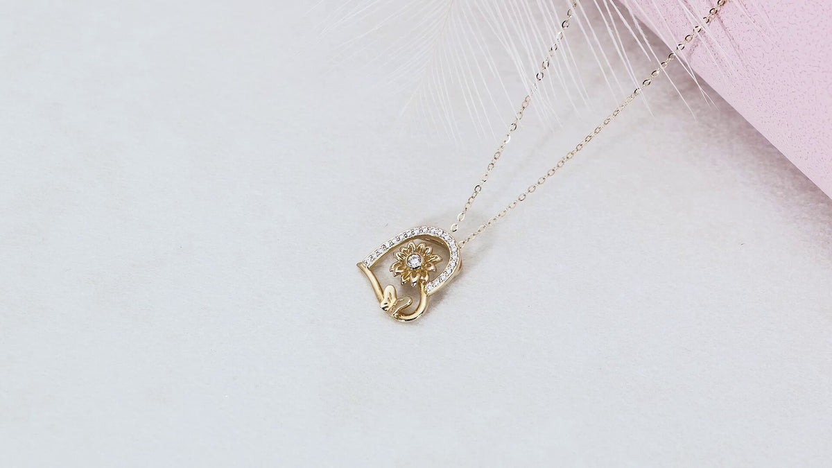 This Pendant Necklace is crafted from 14K Gold, featuring designs like Butterfly, Sunflower, and Heart motifs, adorned with sparkling Cubic Zirconia (5A Austrian Crystal).
