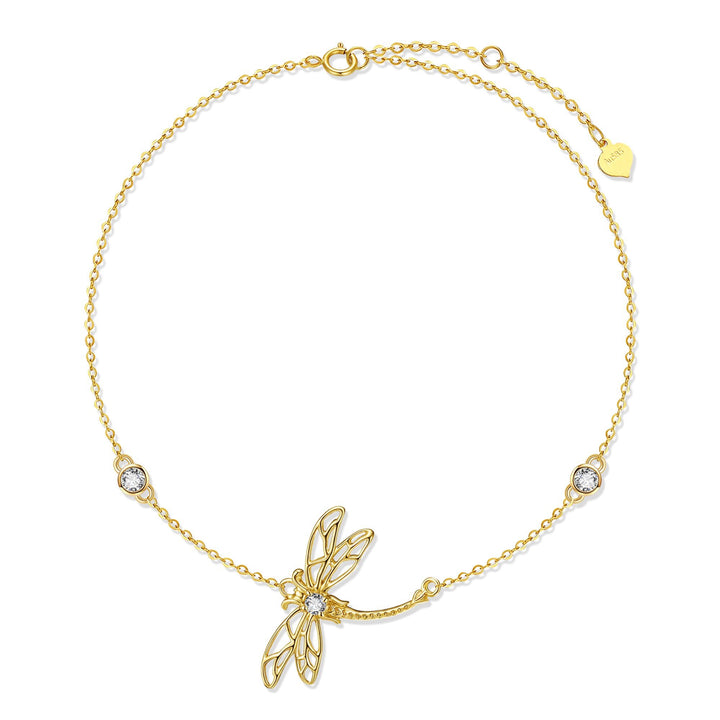 14K Gold Cubic Zirconia Dragonfly Charm Bracelet