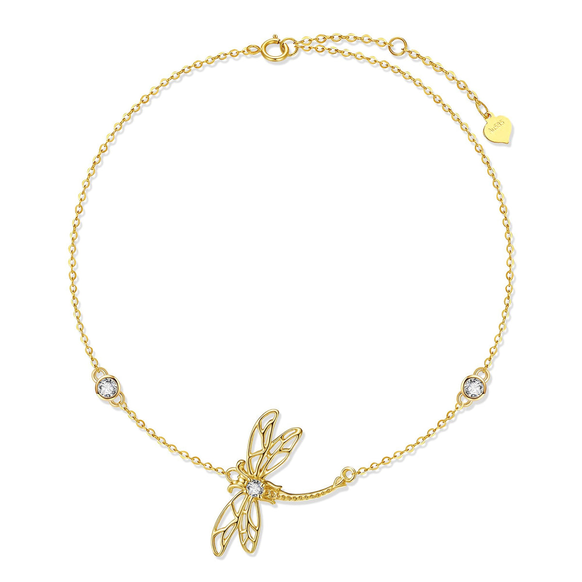 This 14K Gold Cubic Zirconia Dragonfly Charm Bracelet by YFN is an exquisite statement piece for women. Crafted from high-quality 14K gold, this Charm Bracelet features a stunning dragonfly design adorned with sparkling cubic zirconia stones, showcasing intricate craftsmanship and timeless elegance.