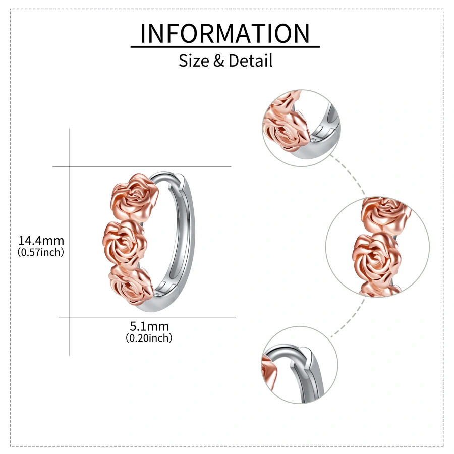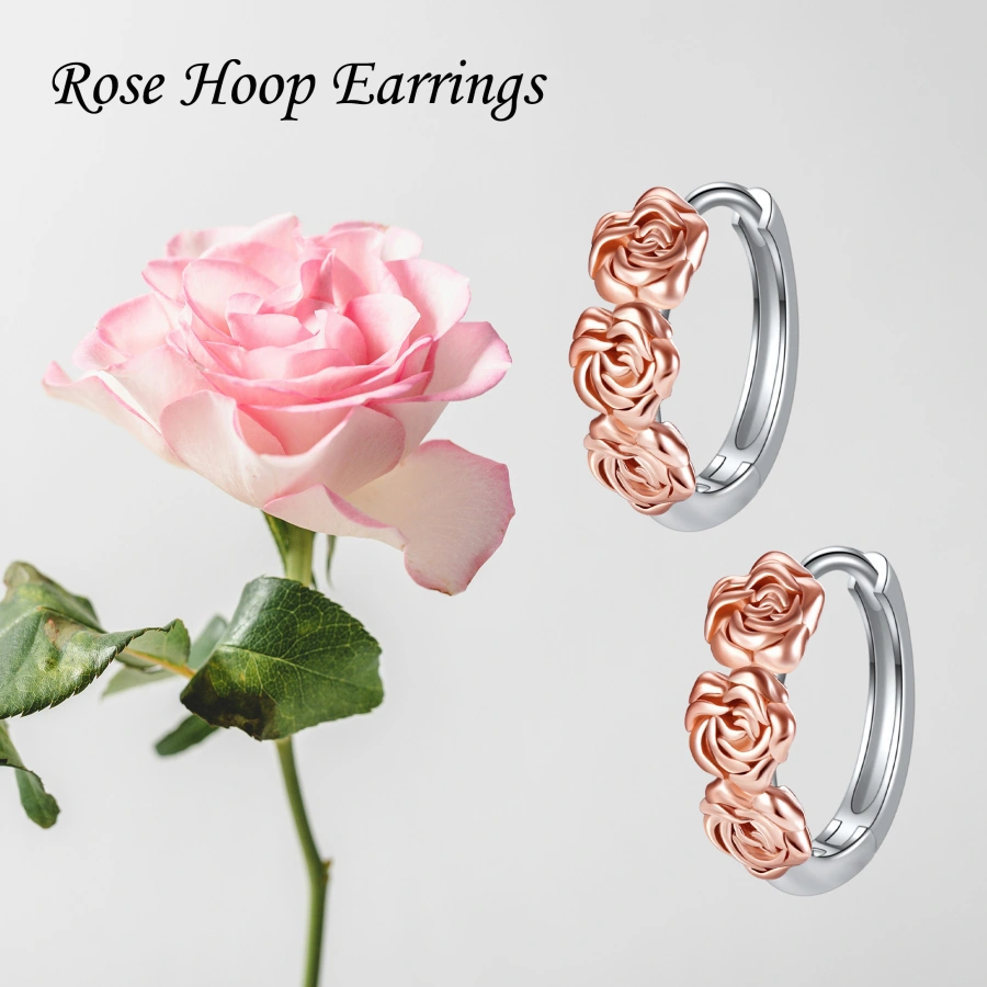 Sterling Silver Two-tone Rose Hoop Earrings for Women