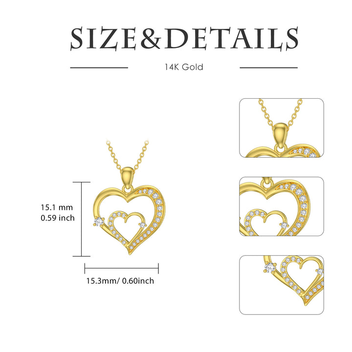 14K Gold Cubic Zirconia Heart Pendant Necklace