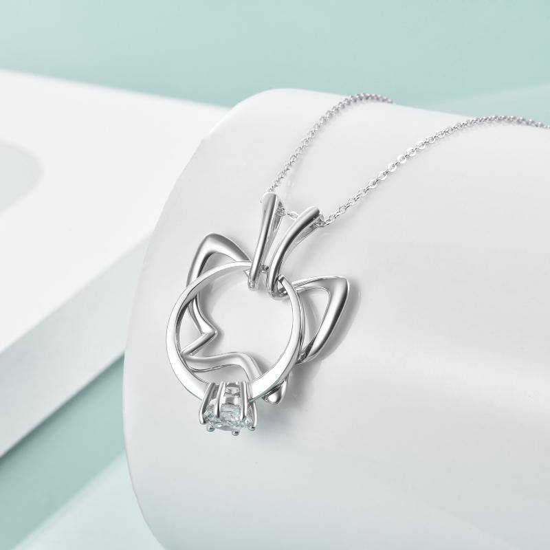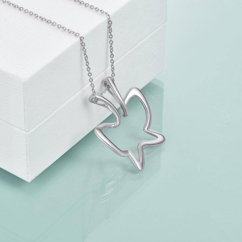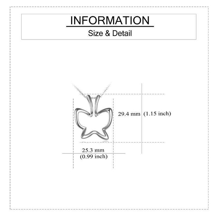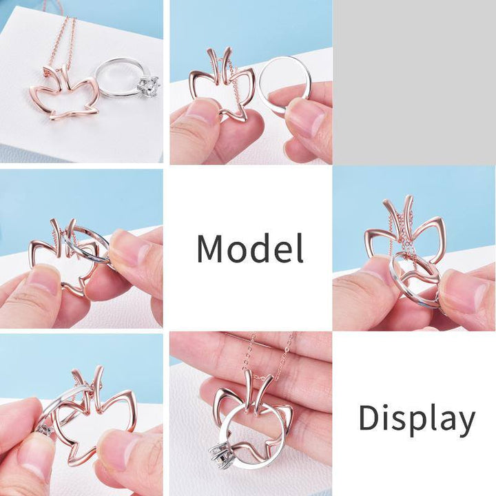 This pendant necklace is made of high-quality Sterling Silver with White Gold Plating. It features a stone-free Butterfly motif and a functional Ring Holder component.