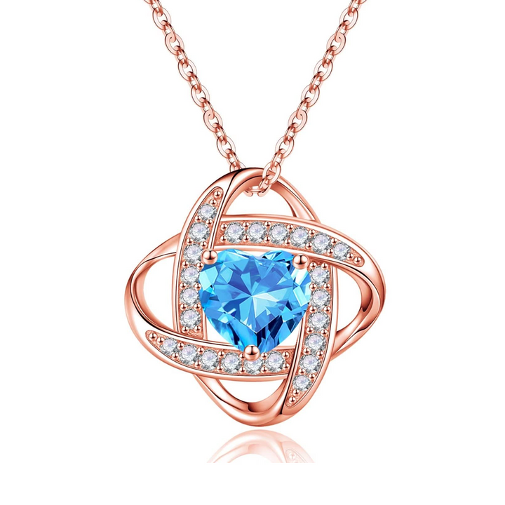 14K Rose Gold Heart Cut Personalized Birthstone Sisters Pendant Necklace