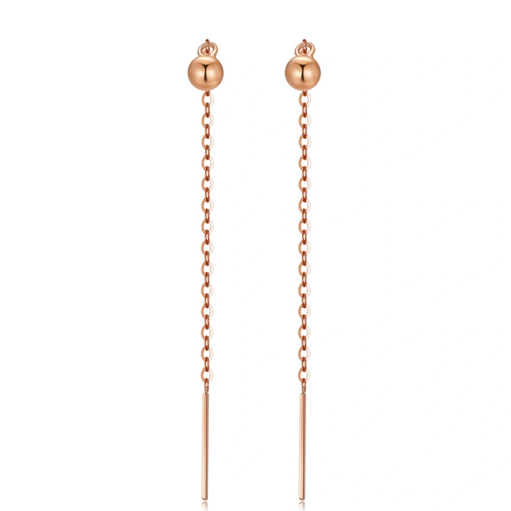 Crafted from high-quality 18K Rose Gold, these stone-free Drop Earrings feature a minimalist Ball design.