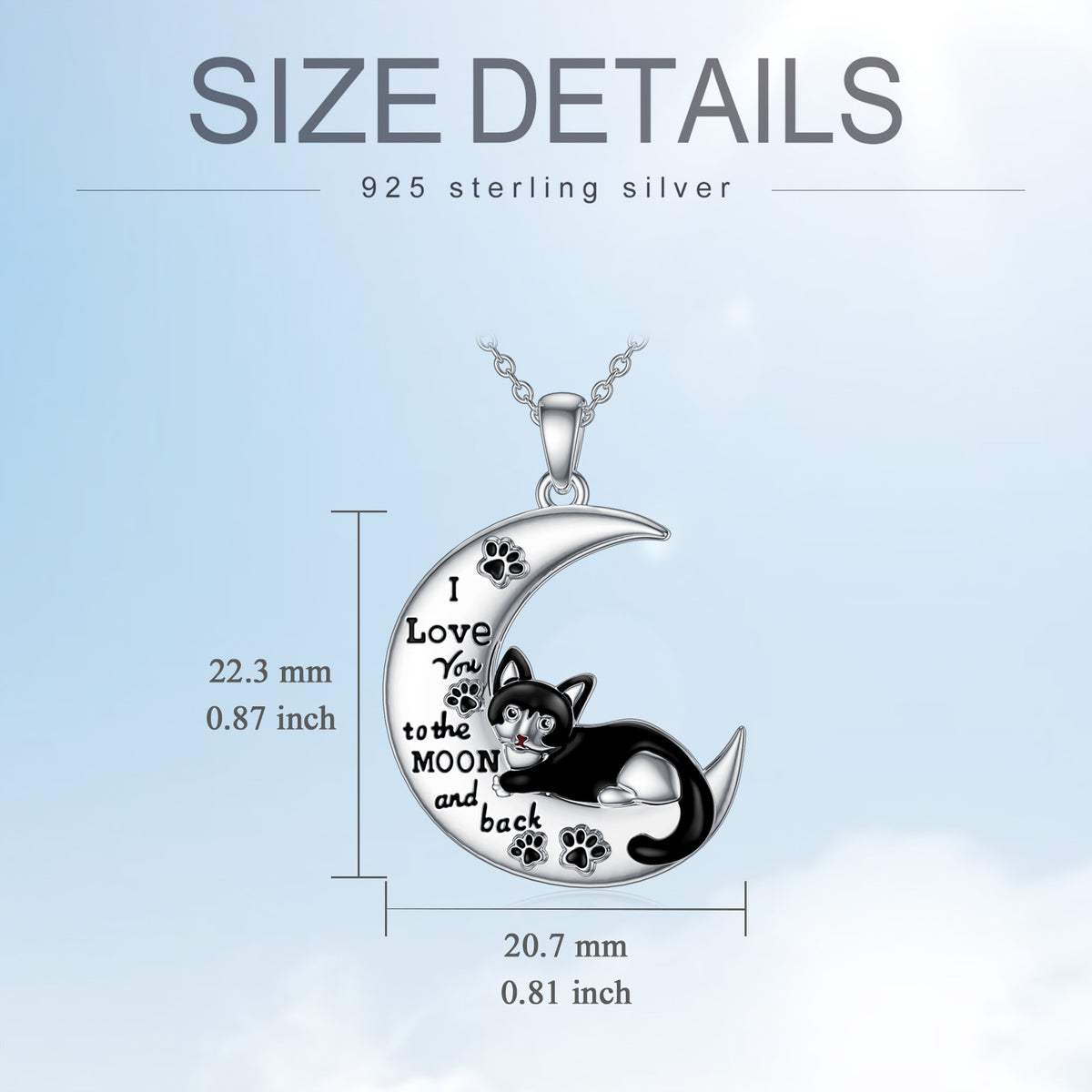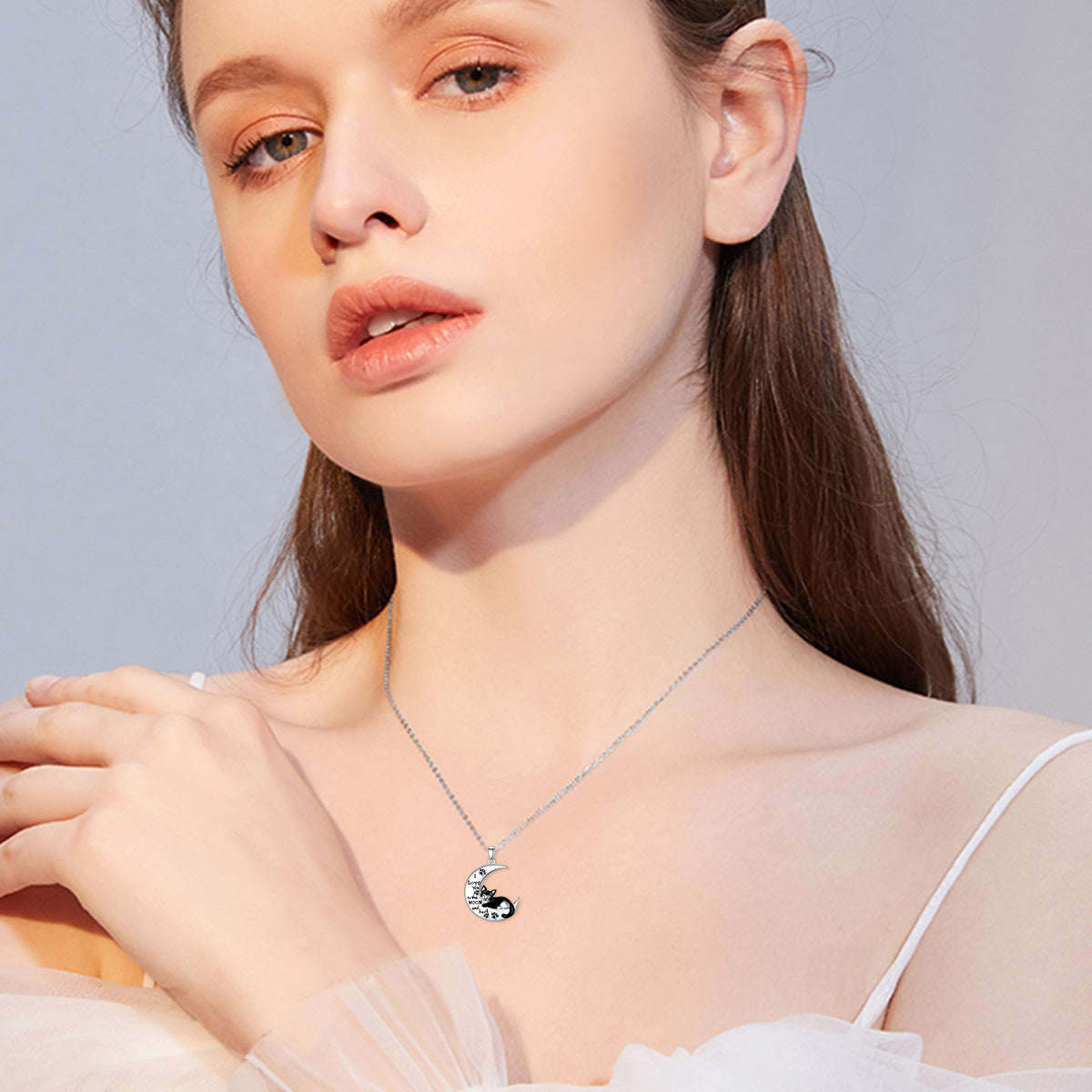 This Sterling Silver Cat & Moon Pendant Necklace by YFN brings a touch of whimsy and elegance together through its enchanting cat perched on a luminous crescent moon. Symbolizing intuition, curiosity, and celestial wonder, the design feels both playful and deeply meaningful. White gold plating enhances the soft glow of the sterling silver, creating a radiant finish that complements feminine and expressive styles. Ideal for women who adore unique and imaginative motifs, this necklace becomes a charming statement piece that transitions effortlessly from everyday wear to special occasions with timeless allure.
