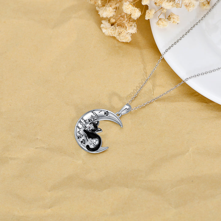 Sterling Silver Cat & Moon Pendant Necklace