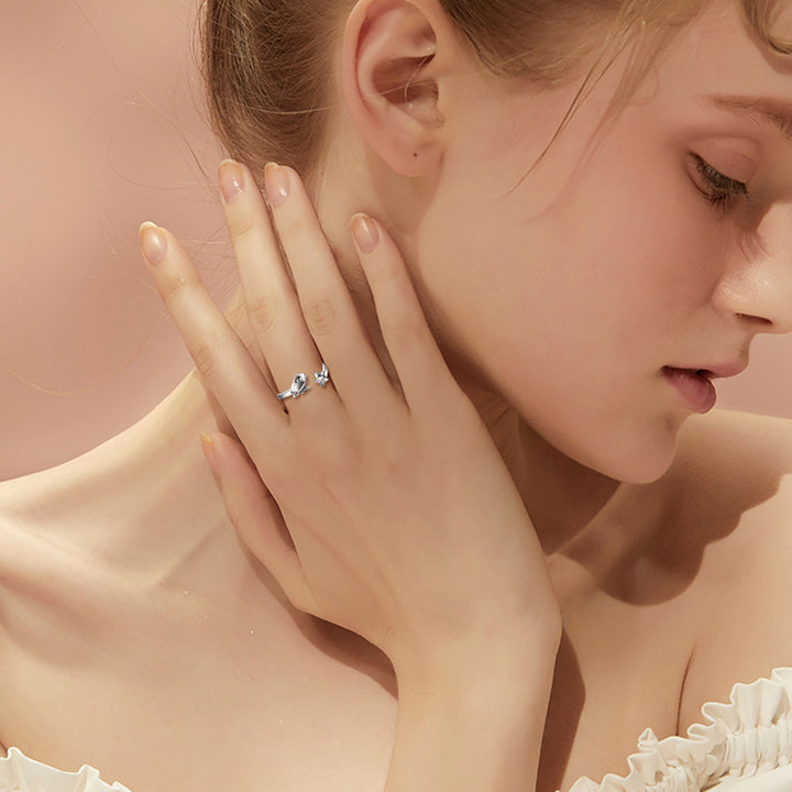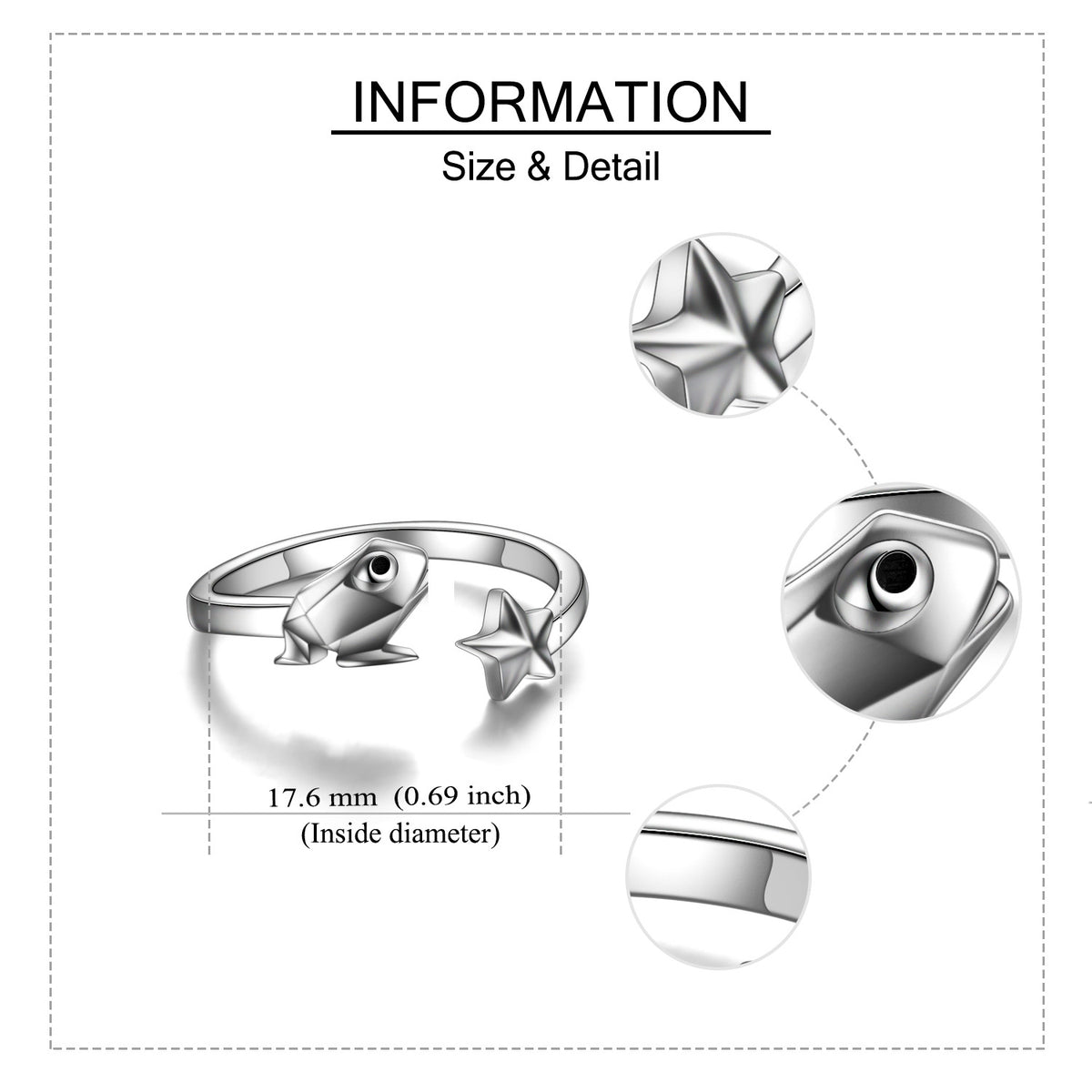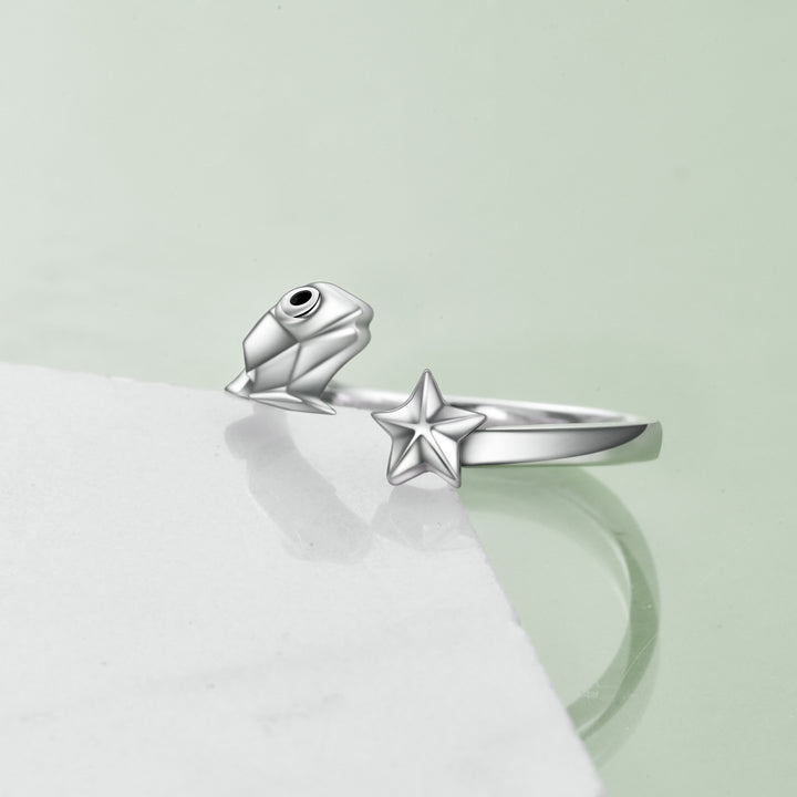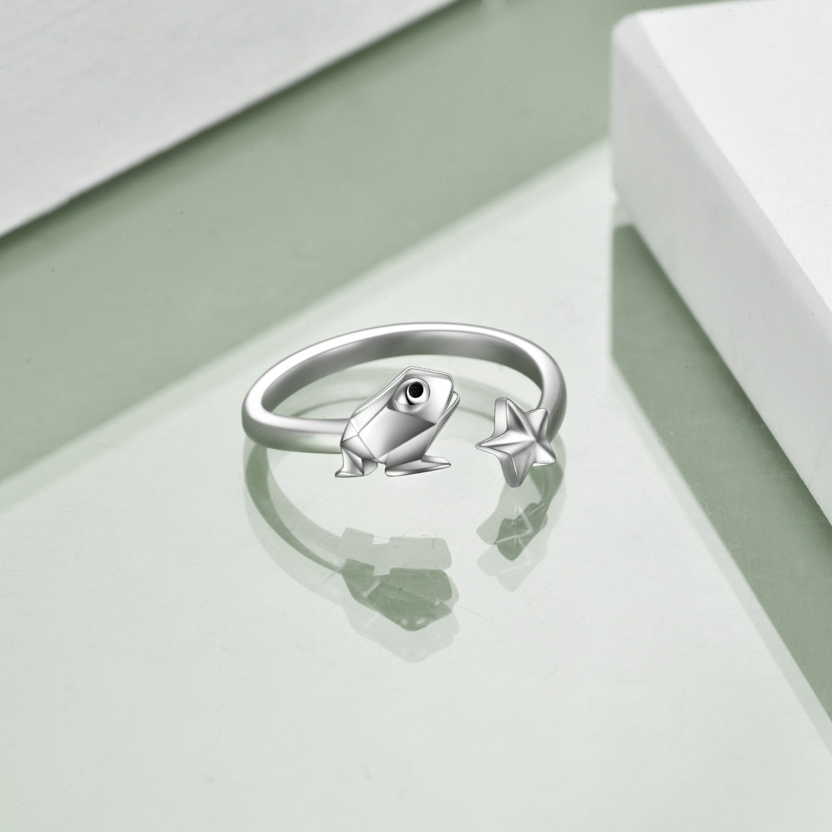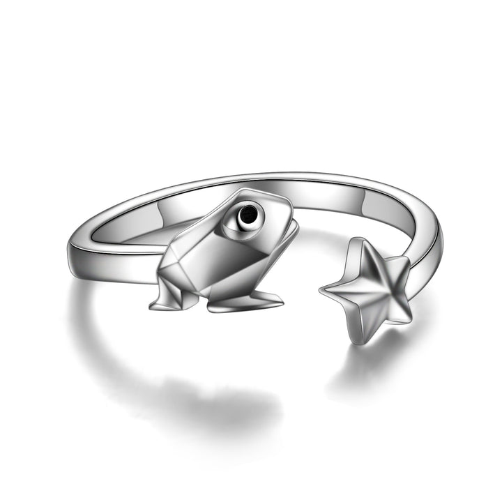 This Sterling Silver Frog and Star Open Ring by YFN pairs whimsical charm with retro silver character. The playful frog and star motifs wrap gracefully around the finger, creating a lighthearted yet artistic silhouette. Crafted as a no-stone design, it offers adjustable comfort and a distinctive look perfect for women who appreciate expressive and imaginative jewelry.