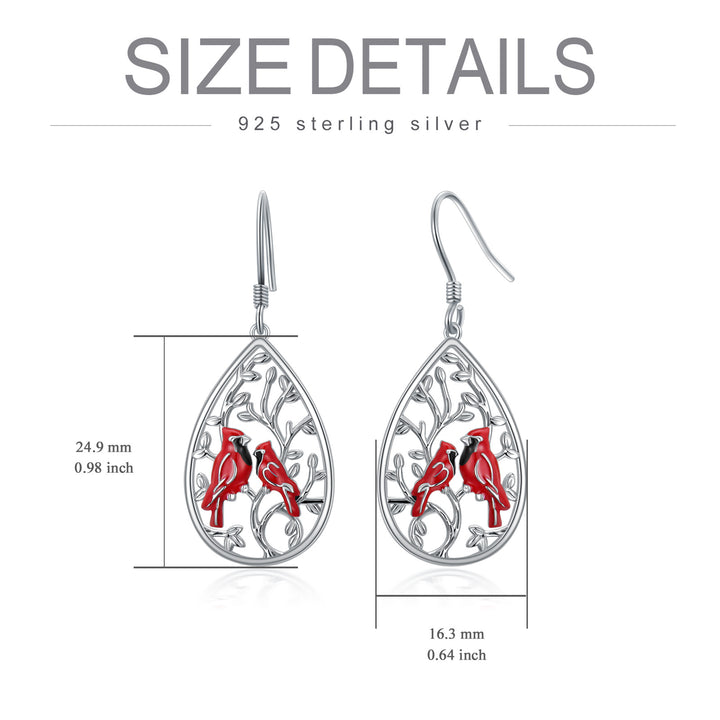 Sterling Silver Cubic Zirconia Cardinal Drop Earrings