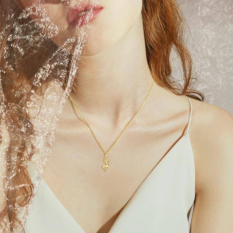 This 14K Gold Moissanite Elk Pendant Necklace by YFN elevates elegance with nature-inspired symbolism, tailored for the modern woman. This stunning Pendant Necklace combines the timeless appeal of 14K Gold with the extraordinary brilliance of a Moissanite centerpiece, reflecting light passionately. The intricately designed Elk Motif adds a touch of wilderness artistry, making it a perfect, unique accessory for every occasion, ensuring you stand out with a piece that tells a distinct story.