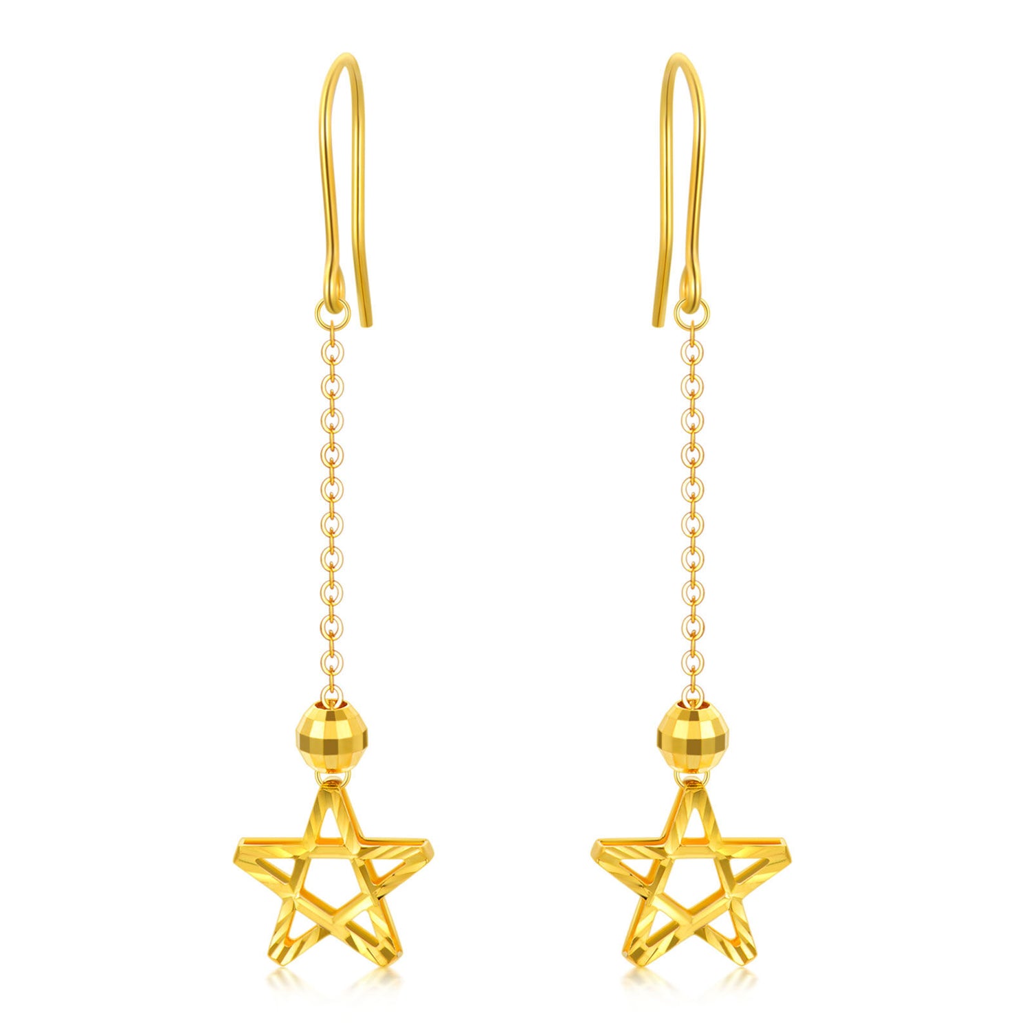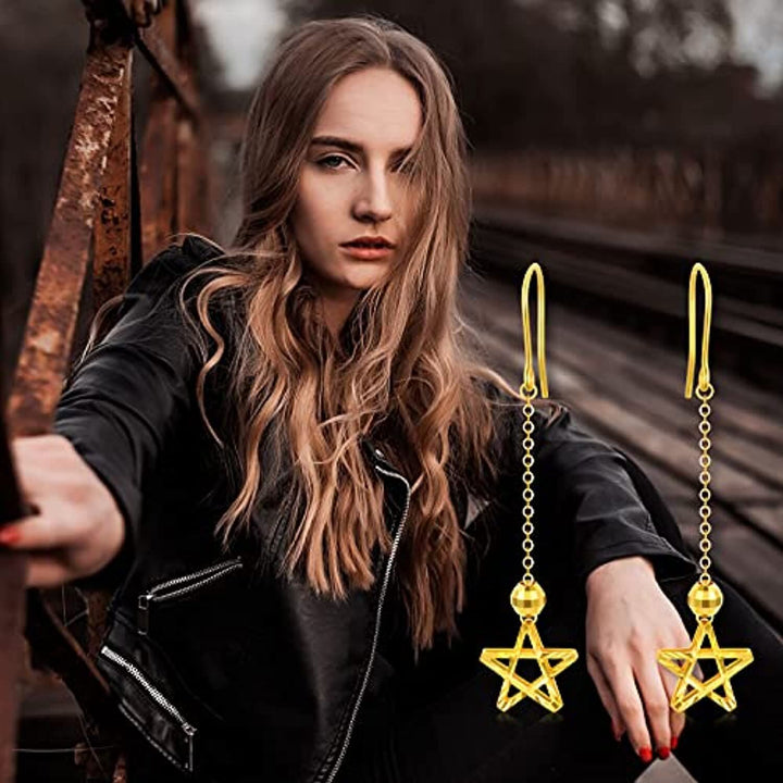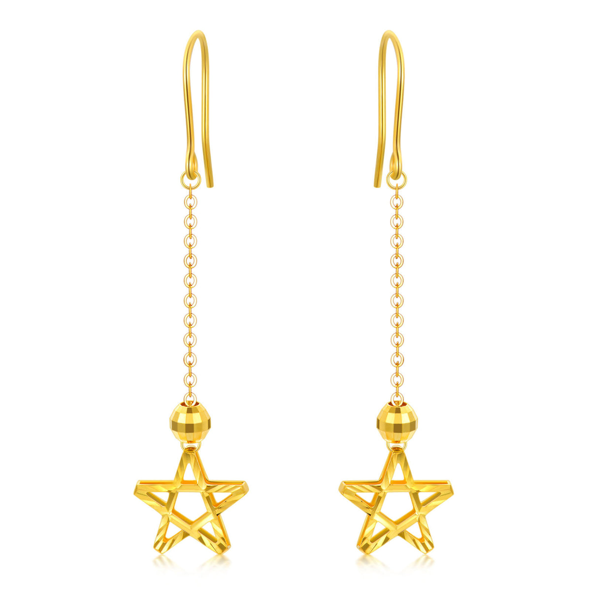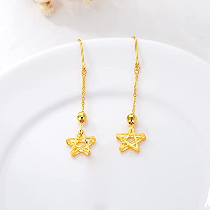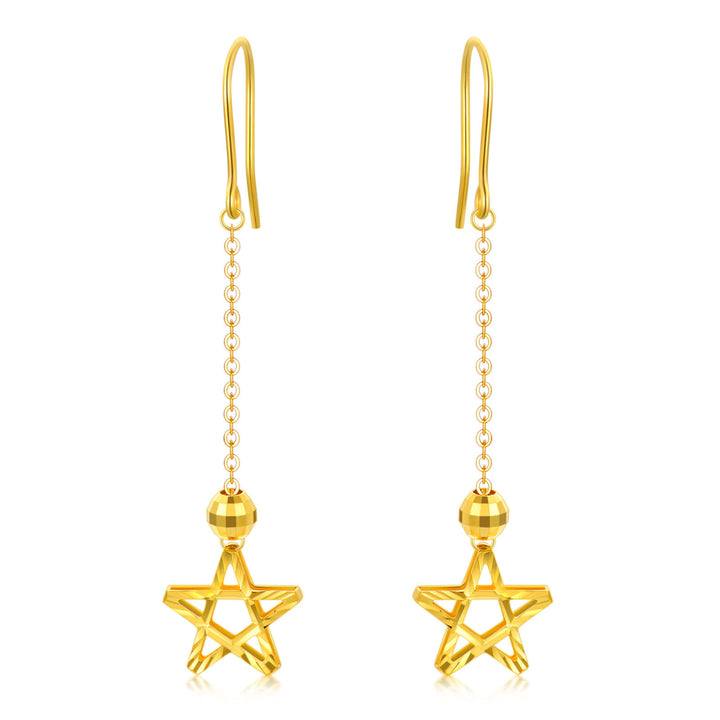 18K Gold Star Drop Earrings