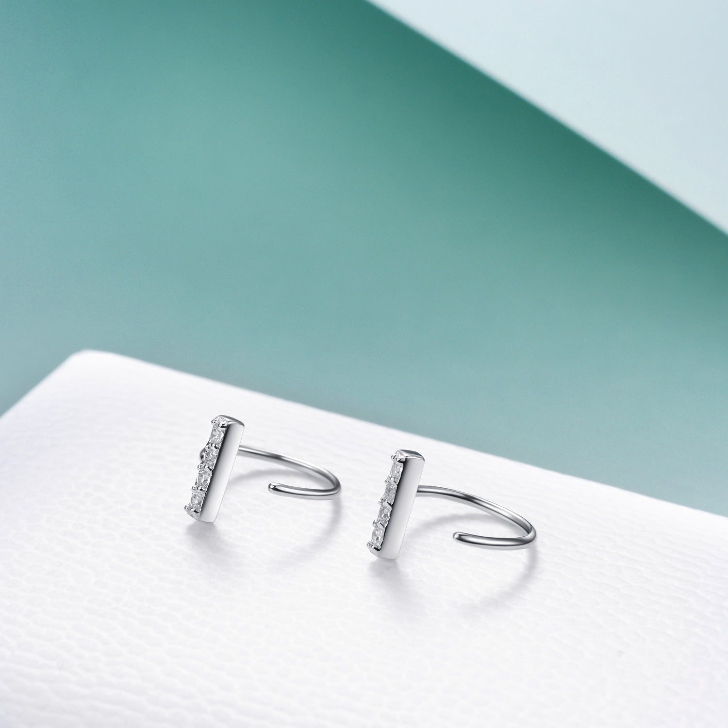 These Hoop Earrings are crafted from Sterling Silver with White Gold Plating, Adorned with Sparkling Cubic Zirconia Set in a Cross Design.