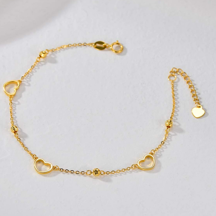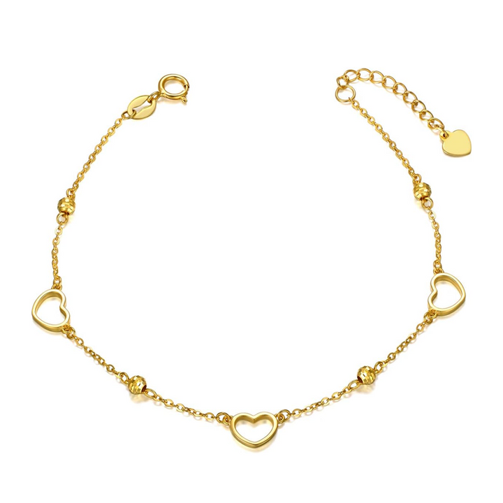 Crafted from solid 18K Gold. This is a Metal Beads Bracelet featuring a Heart Charm (no gemstones).