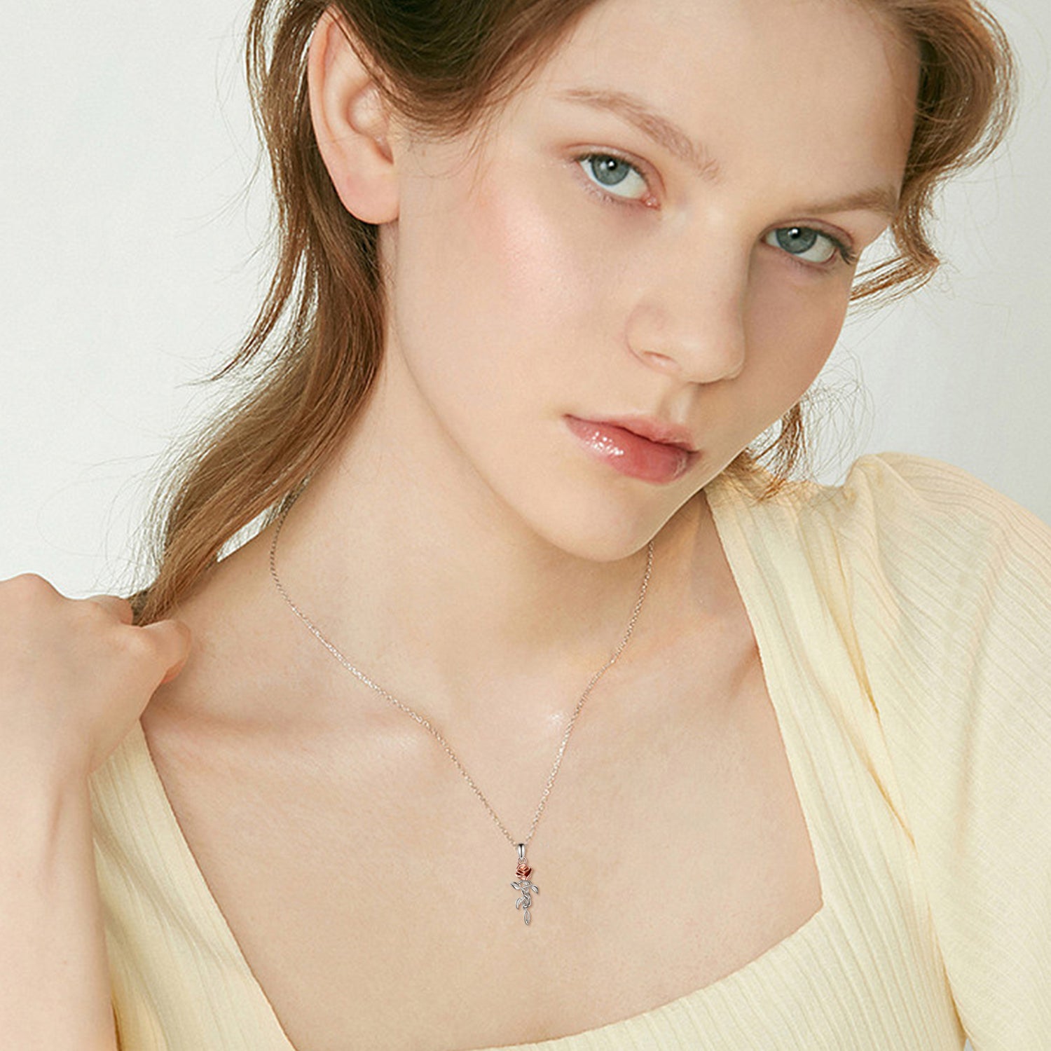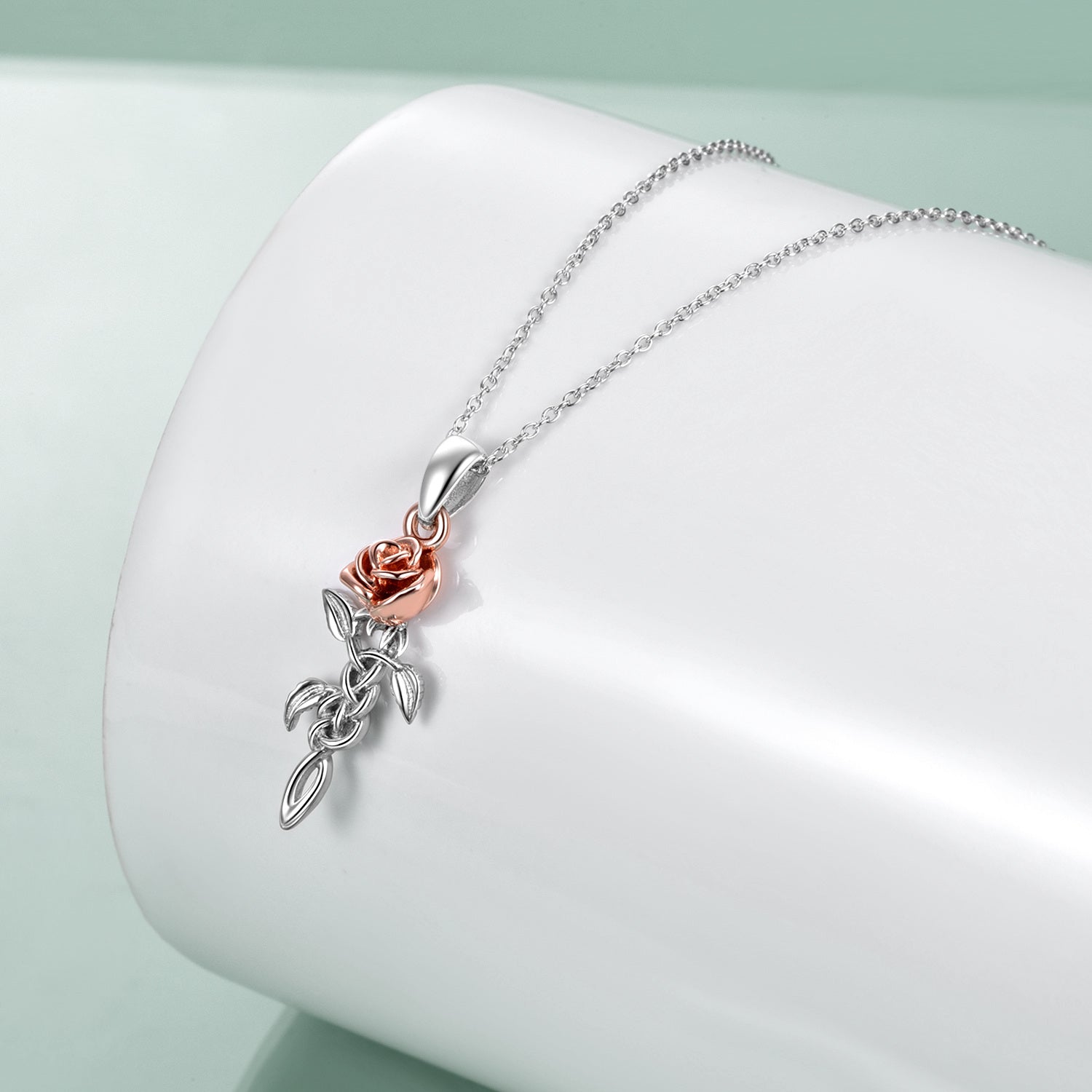 This Sterling Silver Two-tone Celtic Knot Rose Branch Pendant Necklace by YFN is a stone-free piece that celebrates feminine grace for women. Crafted in high-quality sterling silver, this pendant necklace features a delicate rose motif intertwined with a Celtic knot branch. Its unique combination of silver and rose gold hues (two-tone) offers a sophisticated touch without the need for gemstones.