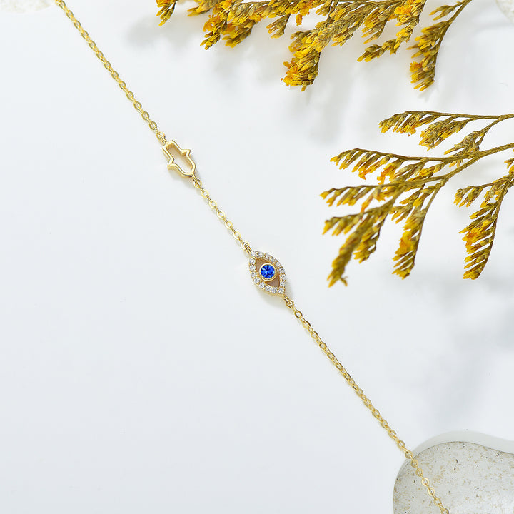 14K Gold Cubic Zirconia Evil Eye & Hamsa Hand Charm Bracelet