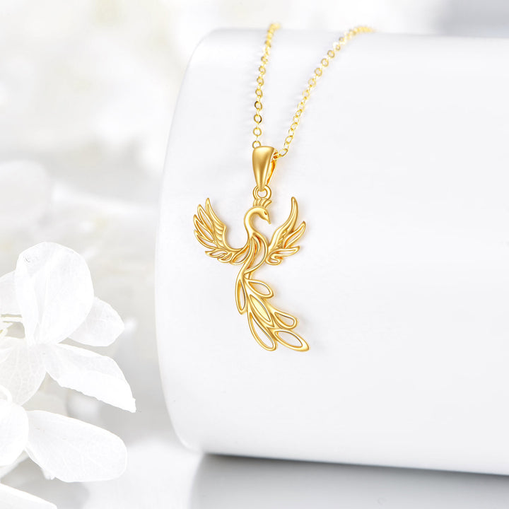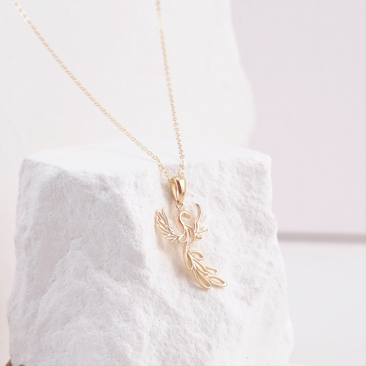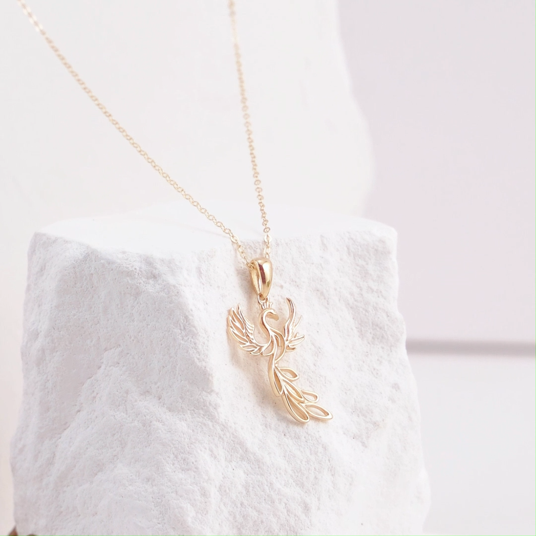 This 14K Gold Phoenix Pendant Necklace by YFN radiates timeless elegance (no stones). Crafted from high-quality 14K gold, the intricate phoenix design symbolizes rebirth and renewal, adding a meaningful touch. This versatile piece effortlessly complements any outfit, allowing the beauty of the craftsmanship to speak for itself for the modern woman.