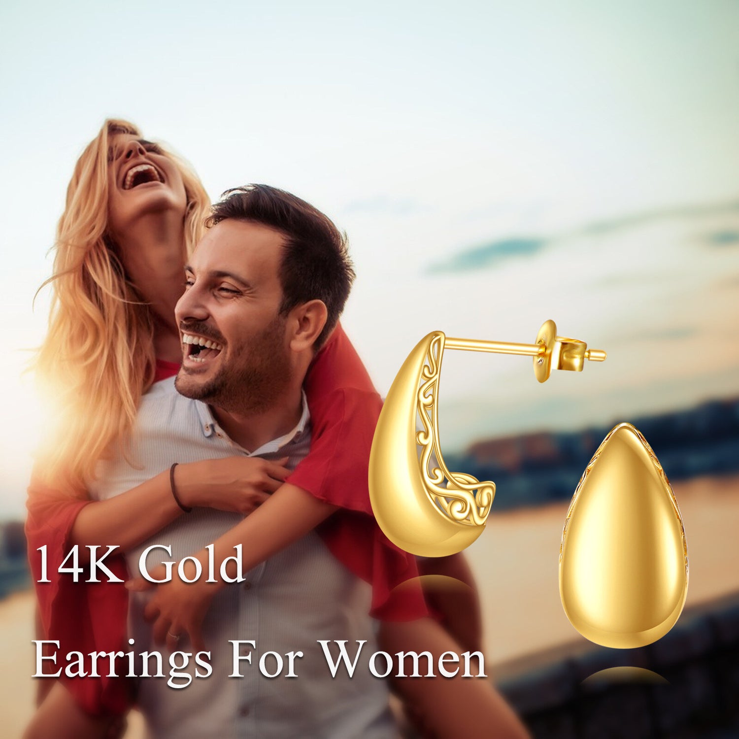These 14K Gold Drop Shape Stud Earrings are designed for women who appreciate elegance and simplicity. Crafted from high-quality 14K Gold, the unique Drop Shape adds a modern flair. The absence of stones ensures the design remains elegantly understated and versatile, making them a perfect everyday essential.