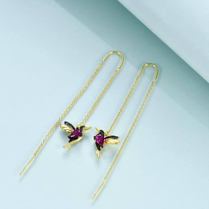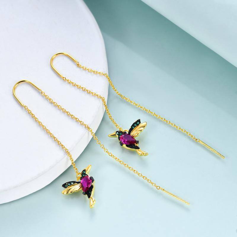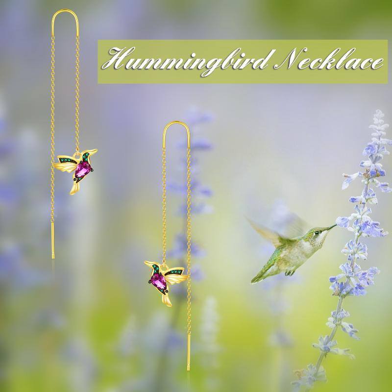 Crafted from Sterling Silver, these Drop Earrings feature a Hummingbird design set with Cubic Zirconia, and are plated in Yellow Gold.