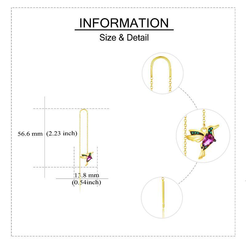 Sterling Silver with Yellow Gold Plated Cubic Zirconia Hummingbird Drop Earrings