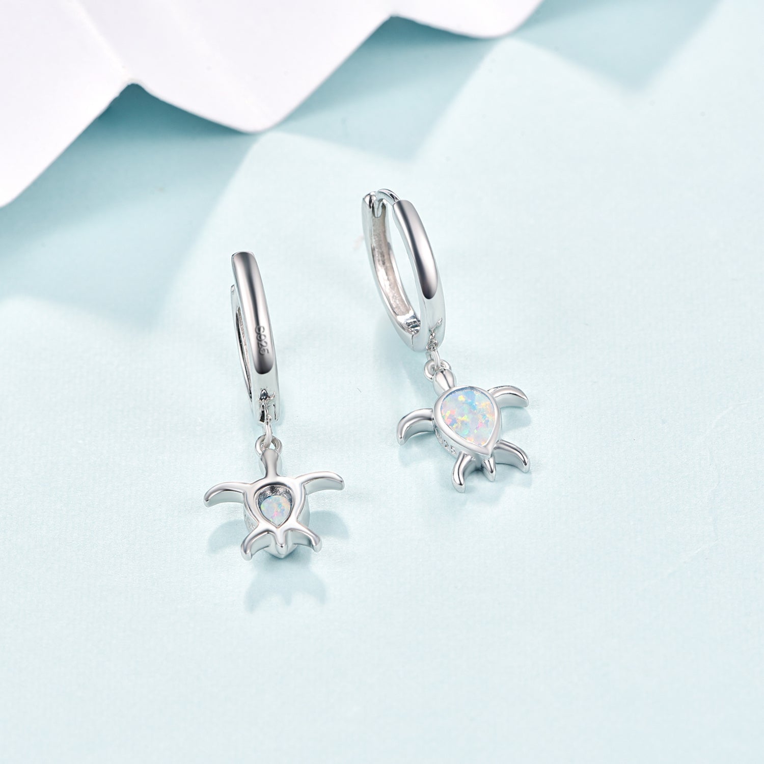 These Sterling Silver Pear Shaped Opal Sea Turtle Drop Earrings by YFN are an exquisite tribute to marine-inspired fine jewelry. The delicate drop earrings showcase a beautifully iridescent pear-shaped Opal, nestled within a graceful Sea Turtle silhouette, symbolizing strength and wisdom. Enhanced with a lustrous White Gold Plating, these captivating earrings achieve a sophisticated, timeless elegance, making them the perfect accessory for women who adore oceanic charm.