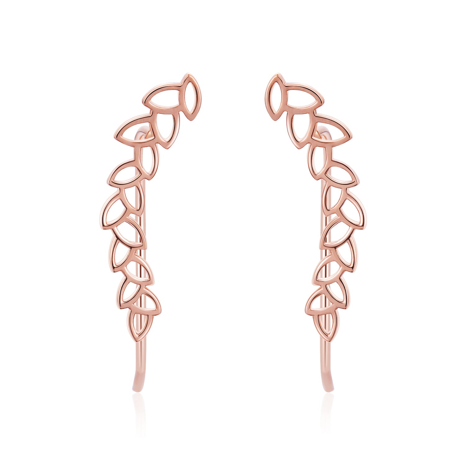 18K rose gold; leaf motif climber design; post and crawler backing.