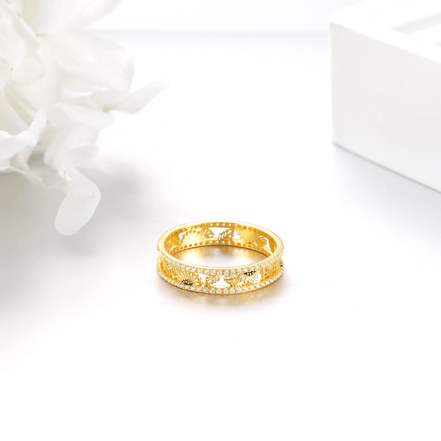 14K Yellow Gold Round Cubic Zirconia Sunflower Ring