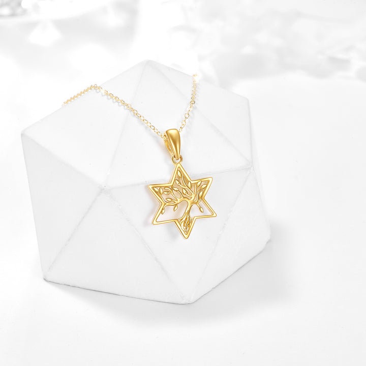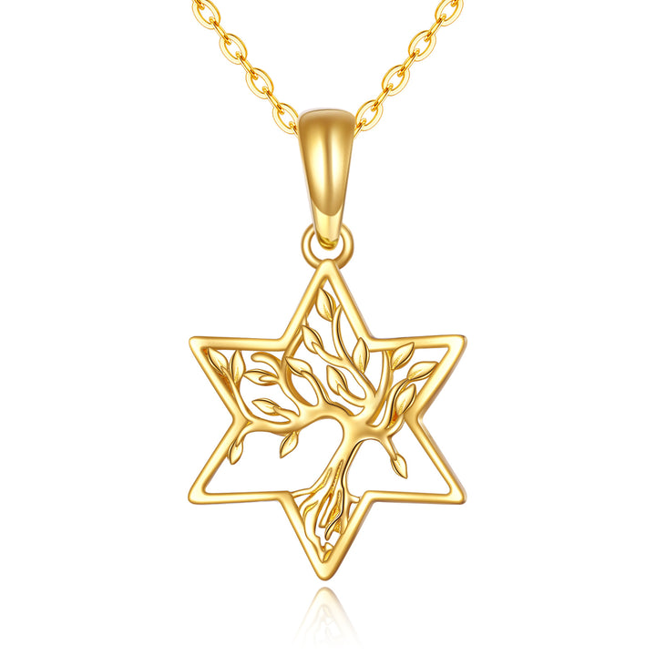 14K Gold Tree Of Life & Star Of David Pendant Necklace For Women