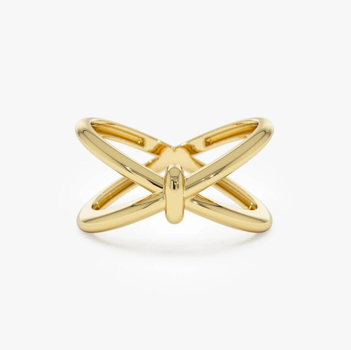 Crafted from solid 14K Gold. This is a Crossover Band Ring.