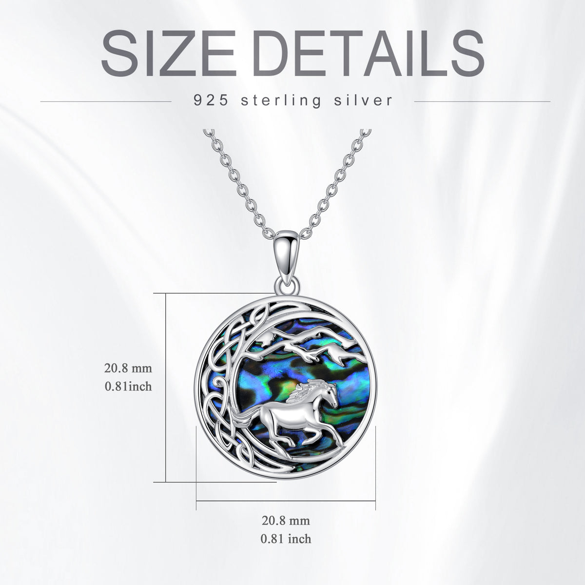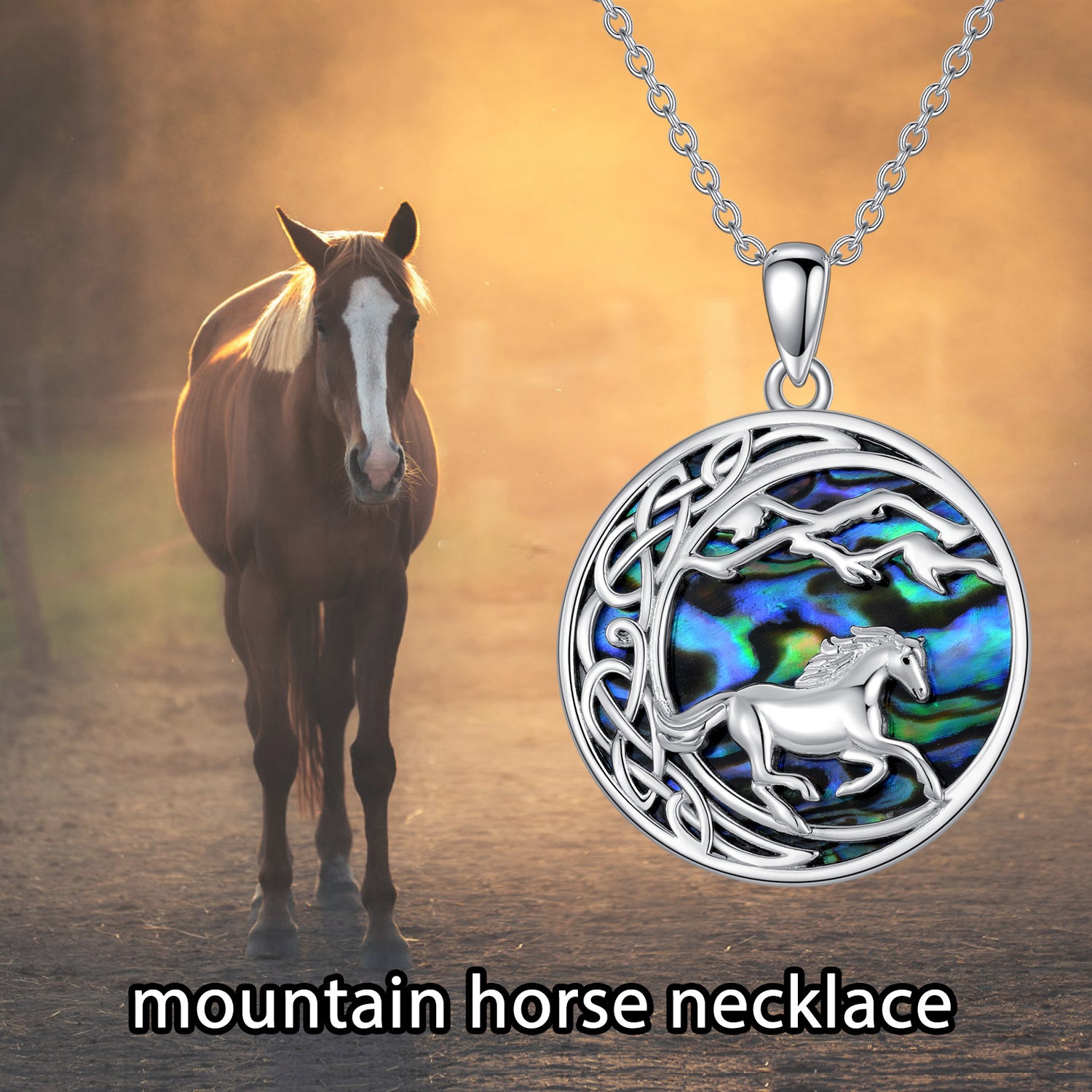 This Sterling Silver Abalone Shellfish Horse & Celtic Knot Pendant Necklace by YFN is a distinctive and sophisticated piece for women, blending natural iridescence with ancient elegance. Meticulously crafted from sterling silver and elegantly white gold plated, this necklace features a stunning abalone shellfish horse design intertwined with a timeless Celtic knot, symbolizing strength and freedom. The high-quality materials ensure durability and a lustrous shine, making it a perfect accessory for any occasion.