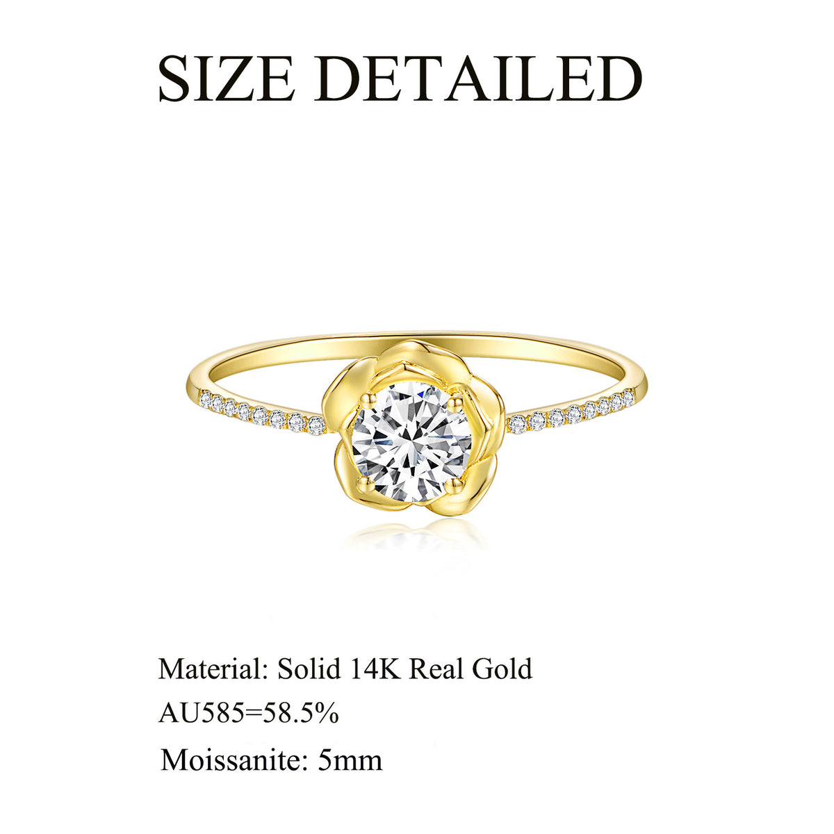 14K Gold Round Moissanite Rose Ring