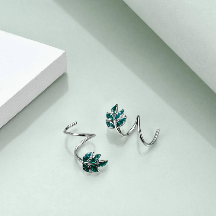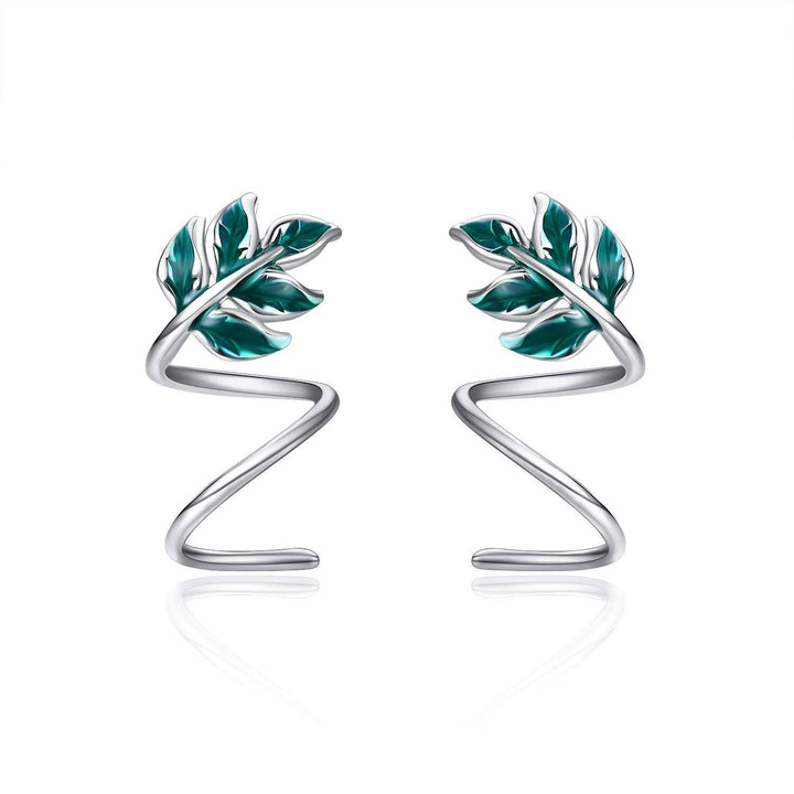 These climber earrings are crafted from high-quality sterling silver with white gold plating. They feature a stone-free intricate leaf motif.