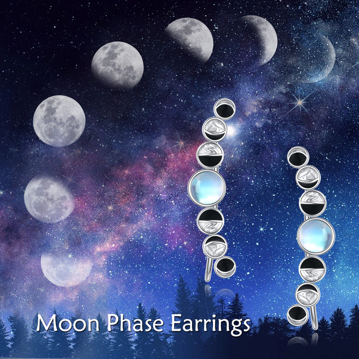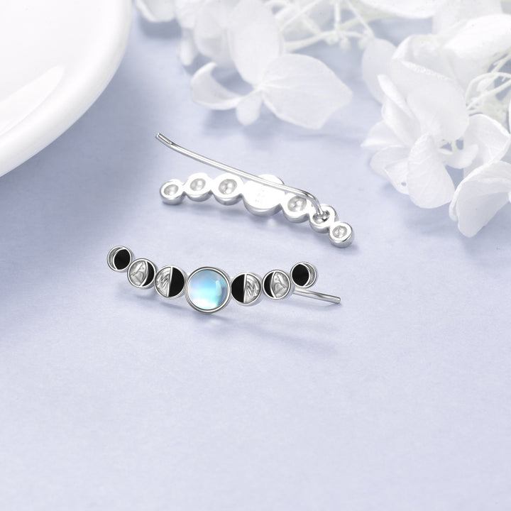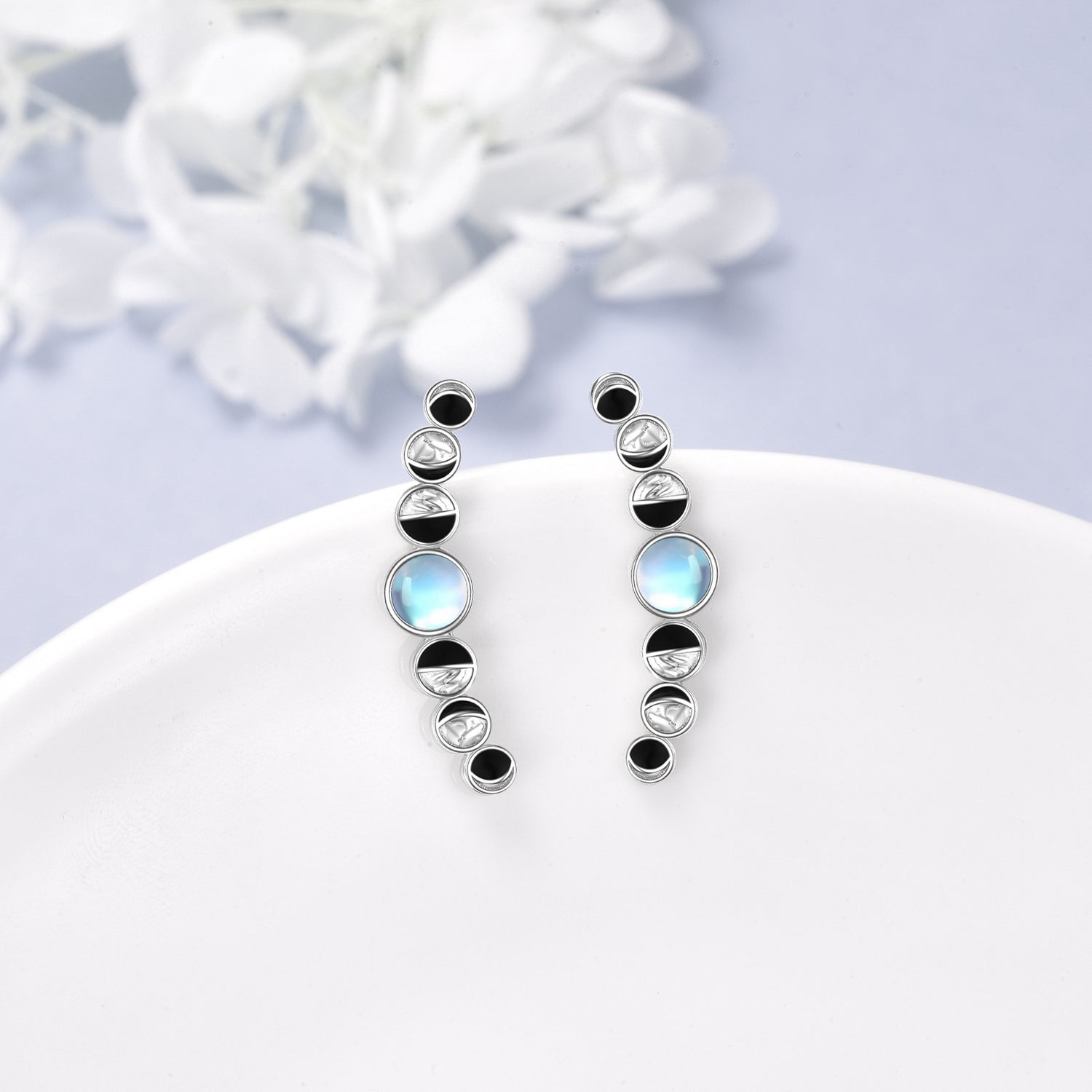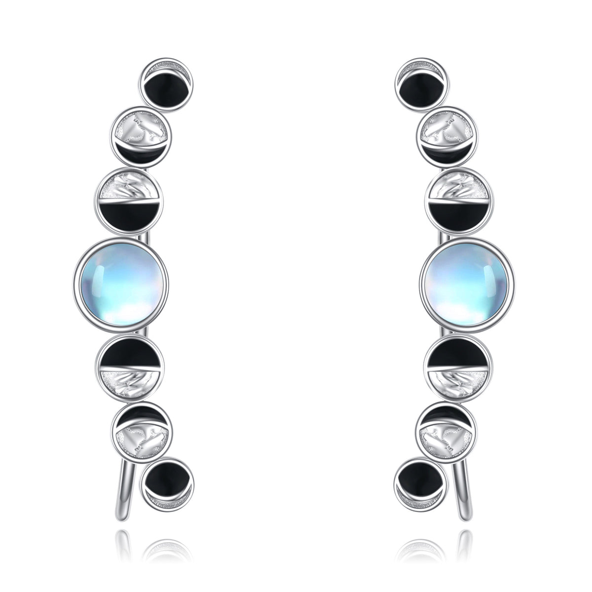 Sterling Silver Circular Shaped Moonstone Moon Climber Earrings