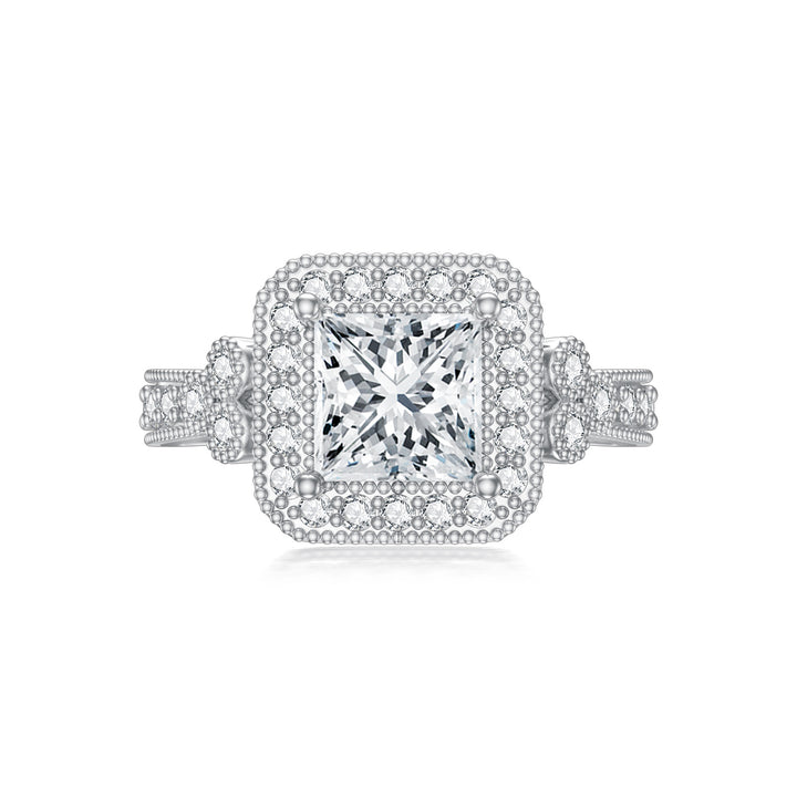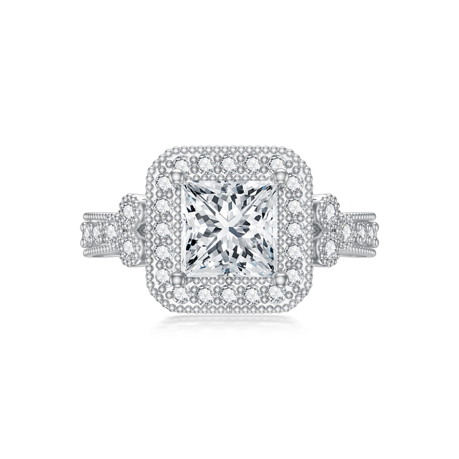 This Women's Custom Square Engagement Ring is Crafted from 14K White Gold, featuring a Lab-Created Diamond and Sparkling Moissanite Accents (3EX, IGI Certified).