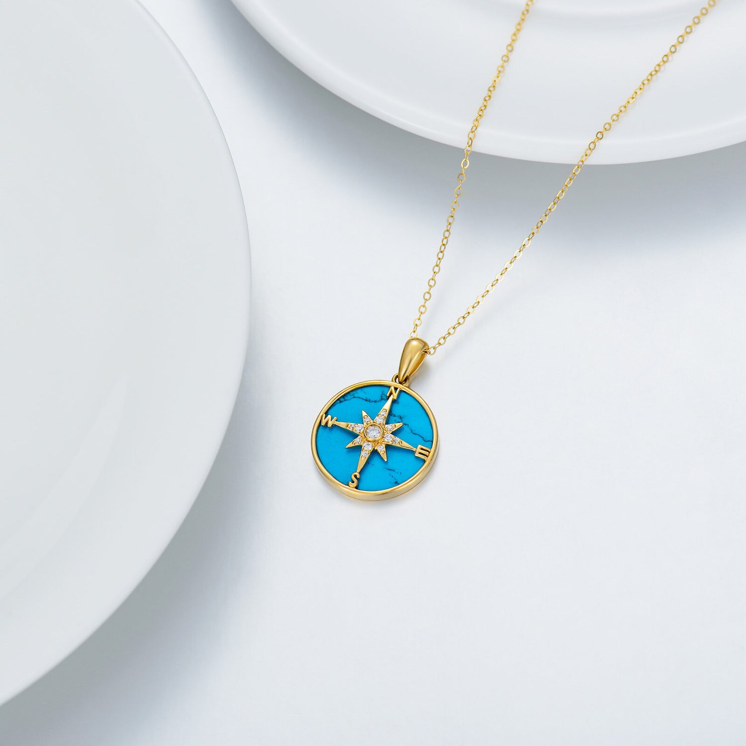 Crafted in 14K gold featuring round turquoise compass pendant. Includes standard necklace chain.