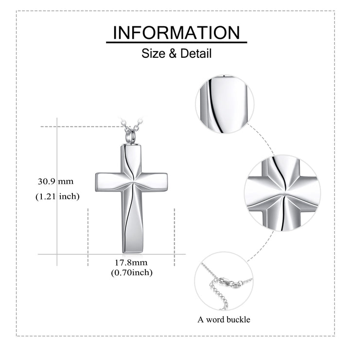 This no-stone Urn Necklace for Ashes is a Unisex Piece Crafted from High-Quality Sterling Silver with White Gold Plating, Featuring a Minimalist Origami Cross Design.