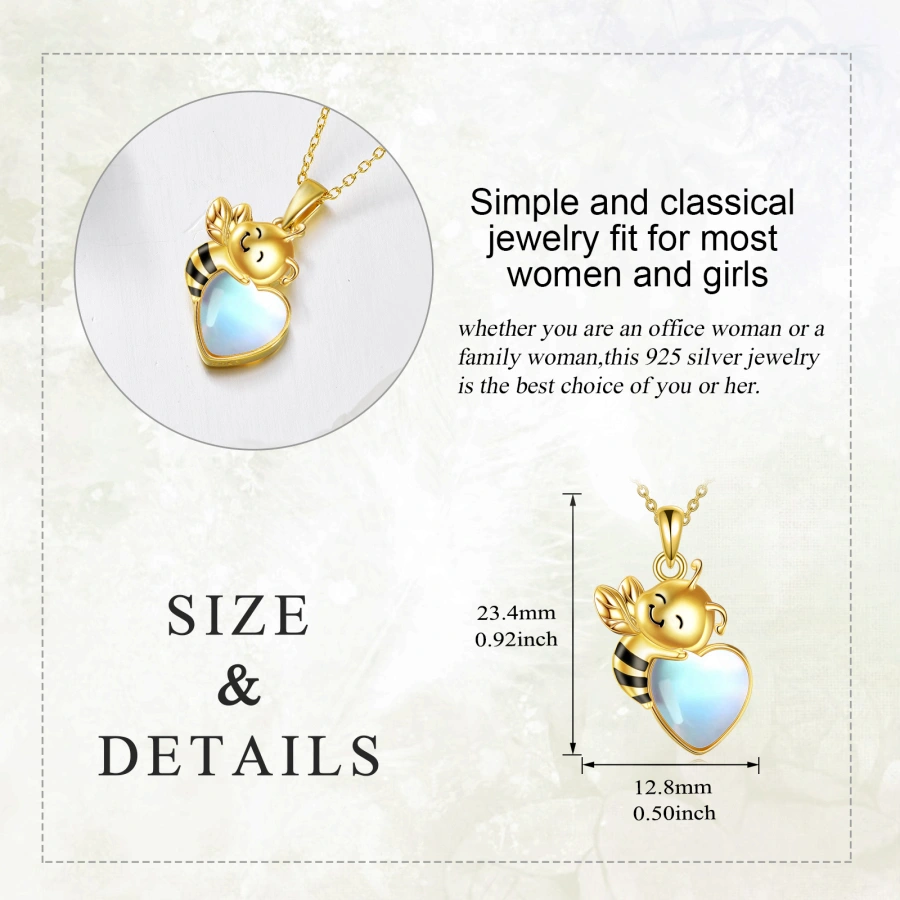 14K Gold Moonstone Bee & Heart Necklace for Women