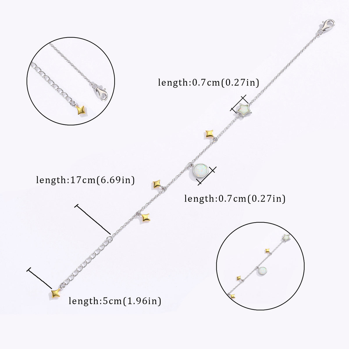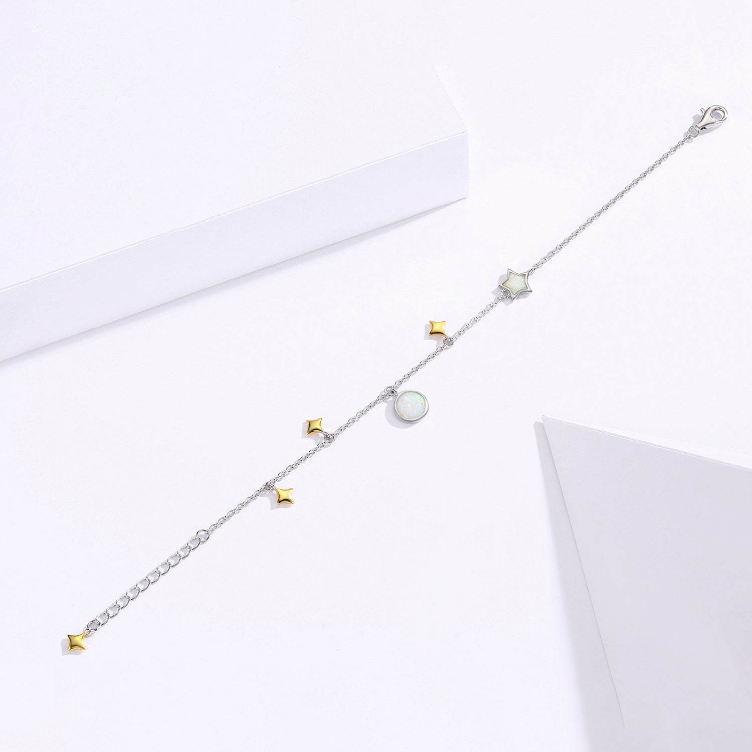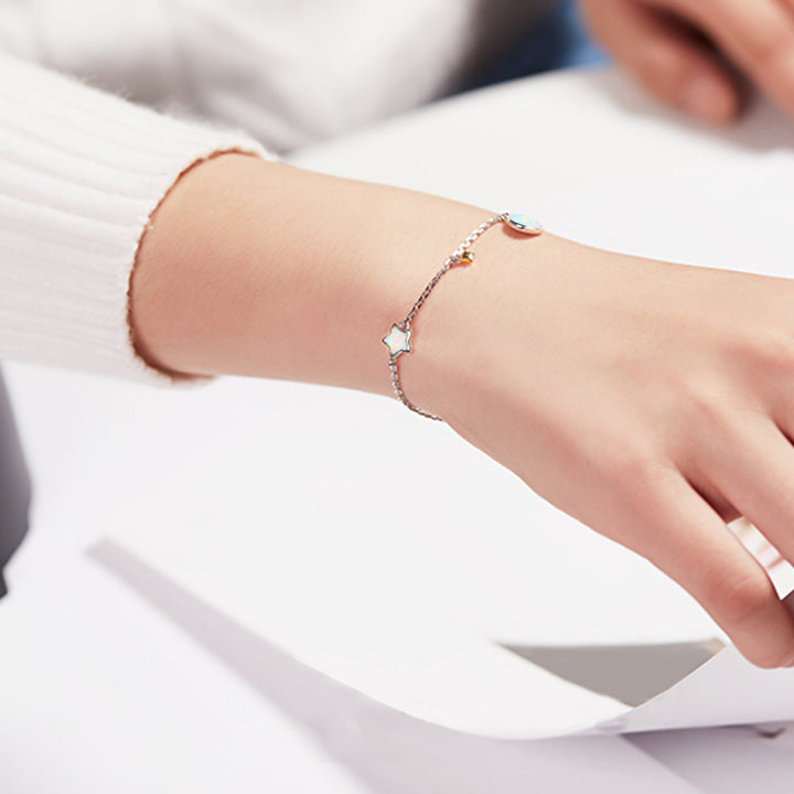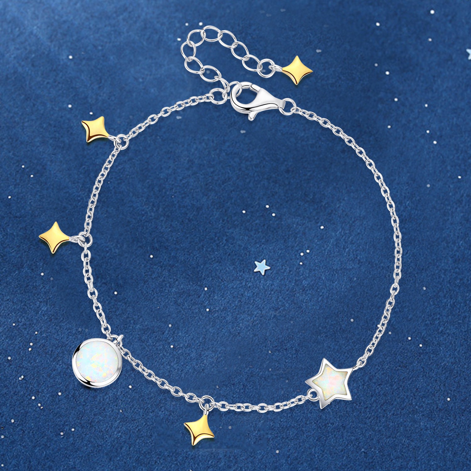 Sterling Silver Opal Moon & Star Charm Bracelet