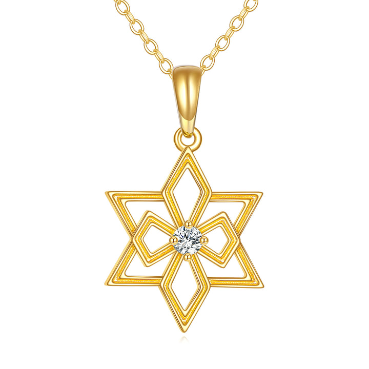 This 14K Gold Personalized Birthstone Star Of David Necklace by YFN features a beautiful blend of sophisticated style and meaningful tradition. The classic Star of David motif is crafted in lustrous 14K Gold and enhanced with a brilliant Cubic Zirconia centerpiece. Adding a personal touch, it is customized with a Personalized Birthstone, making it a versatile, unisex piece perfect for both casual and formal attire. This necklace is a testament to quality craftsmanship and timeless, symbolic design.